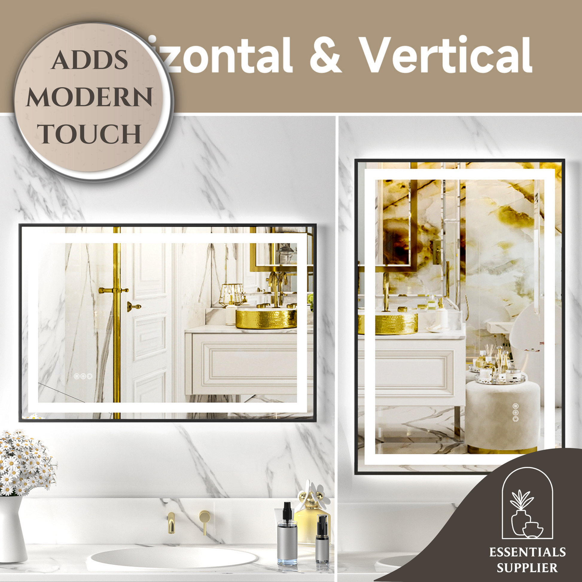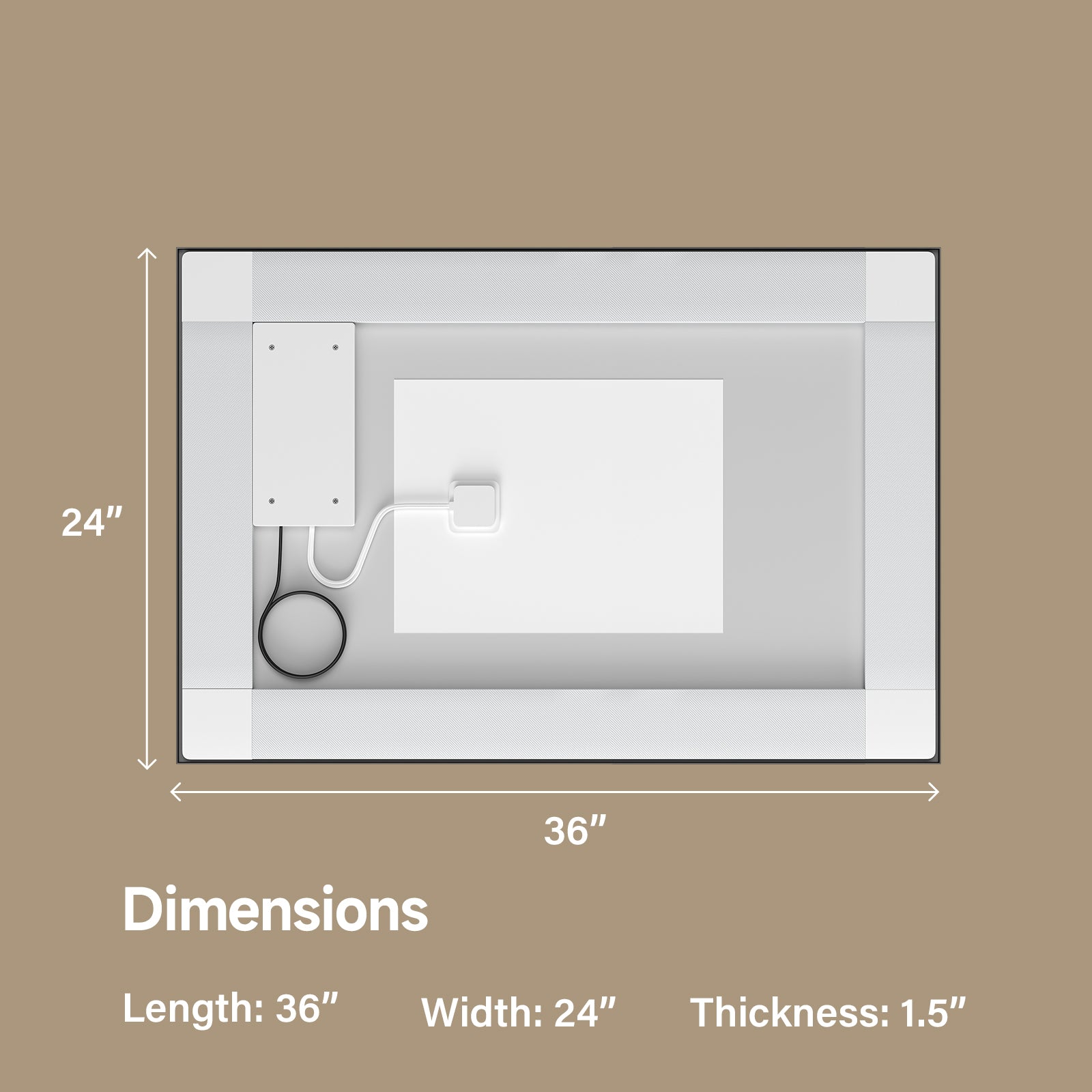 24x36" Black Framed LED Mirror with Dual Front & Back Light Strips