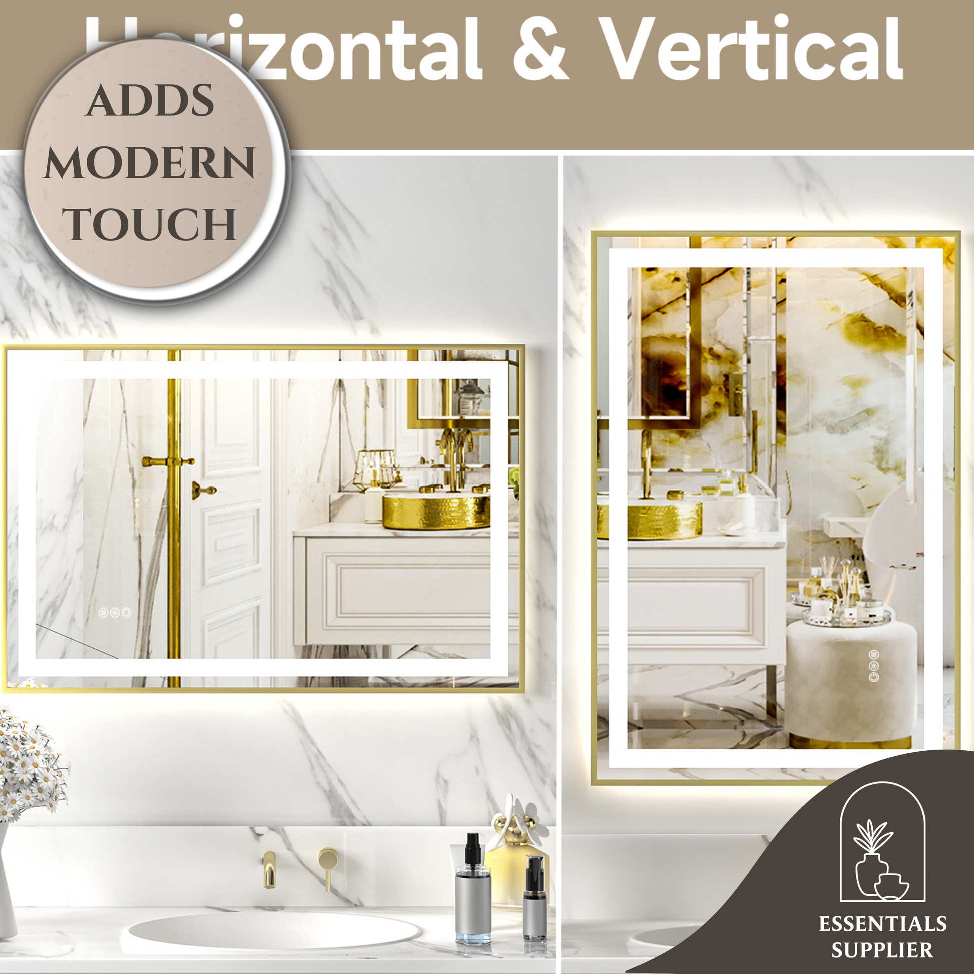 ✅ Elegant Gold-Framed Design – Stylish metal frame with front and back dual LED lighting for a soft, ambient glow.