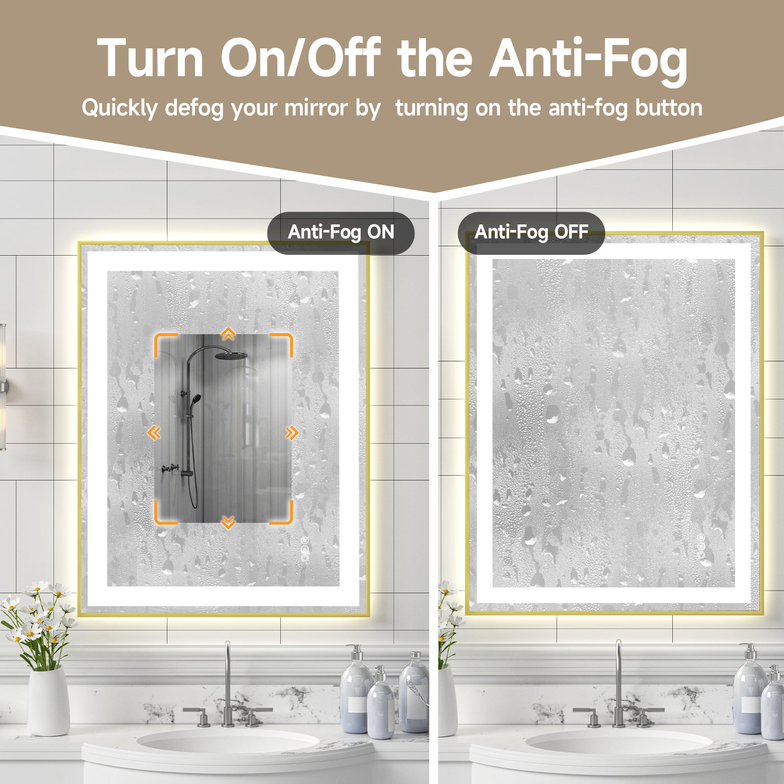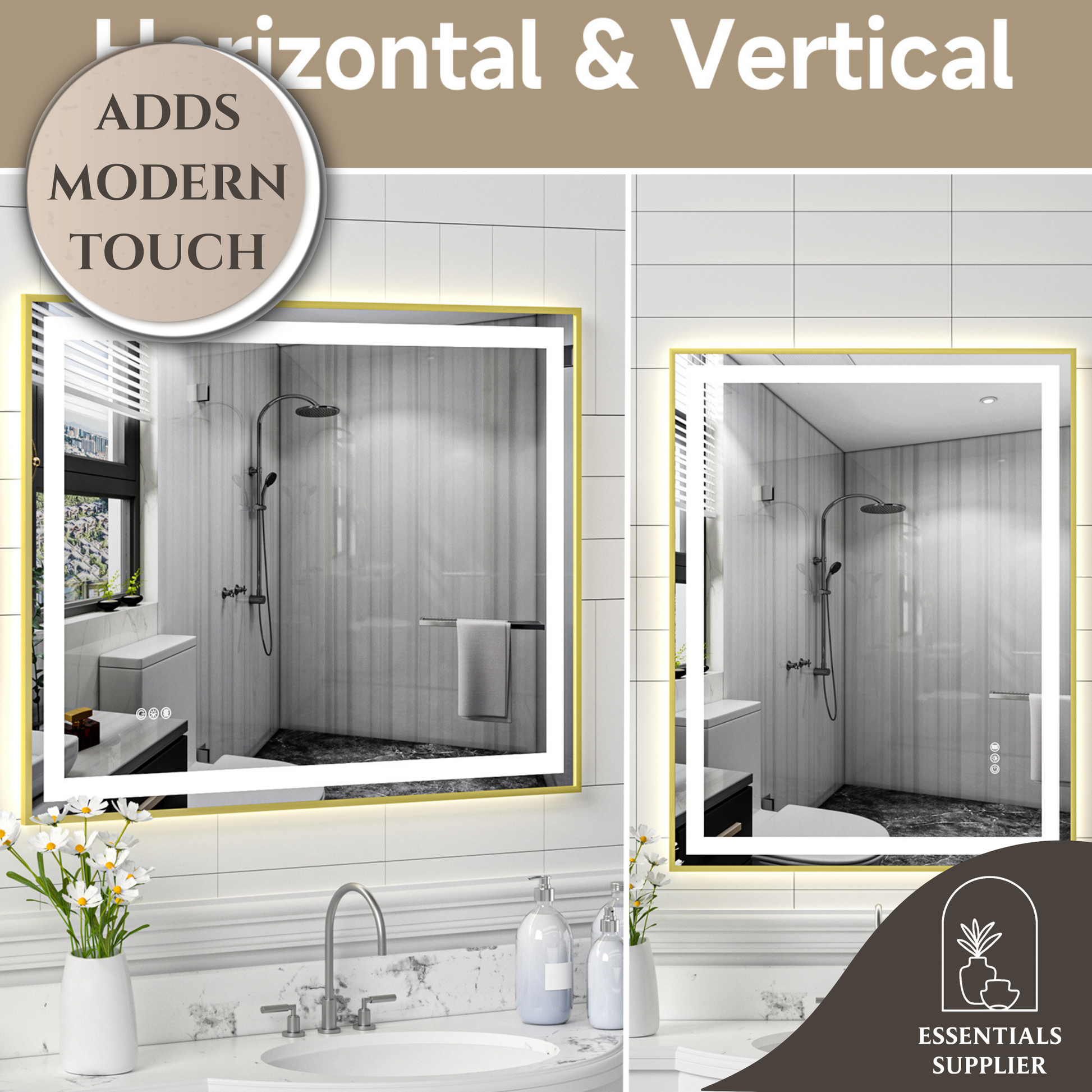 28x36" Gold Framed LED Mirror with Dual Front & Back Light Strips