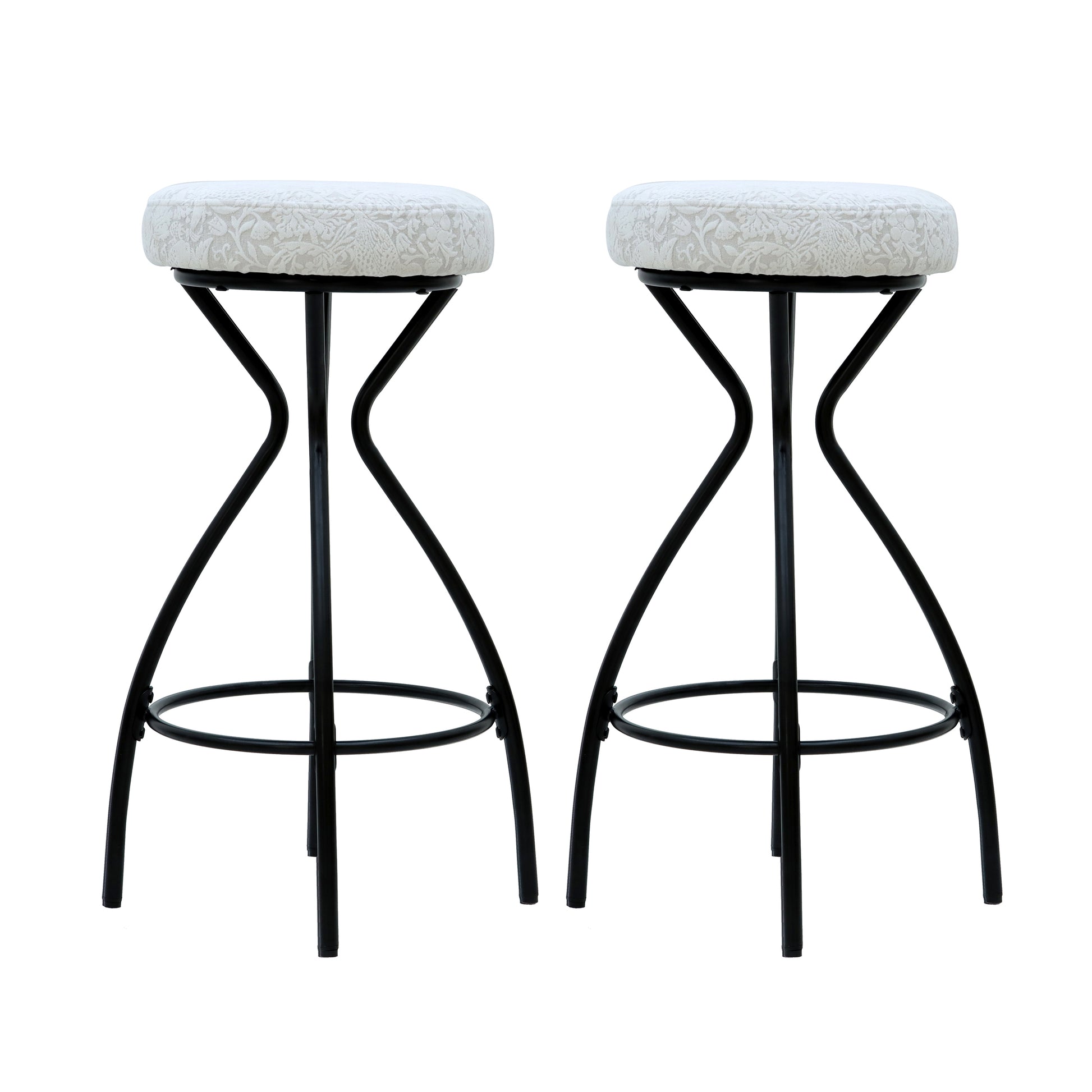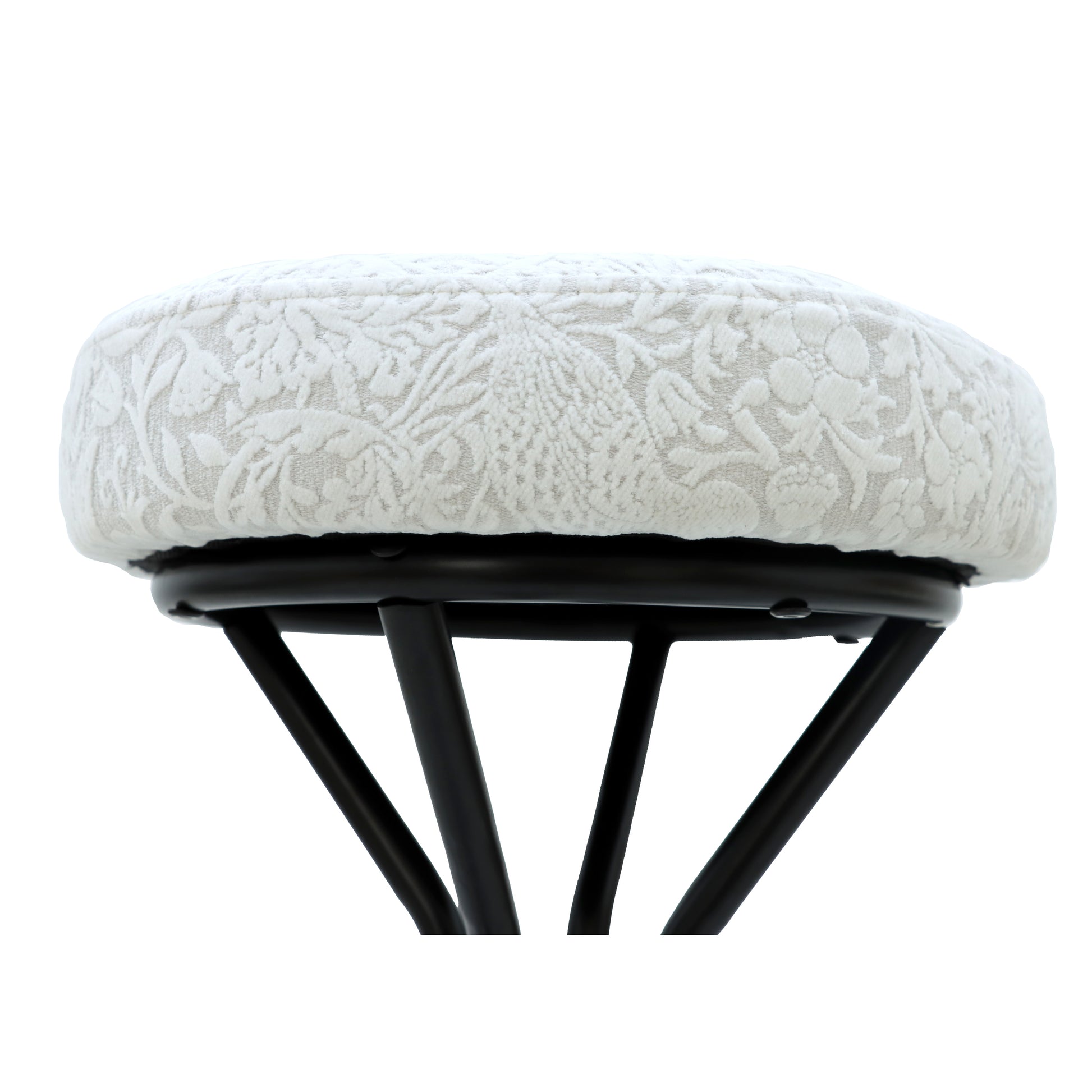 ✅ Stylish Modern Elegance – This set of 2 upholstered counter height bar stools combines comfort and style with a plush round seat in a chic black & white floral print, paired with a sleek black powder-coated frame.