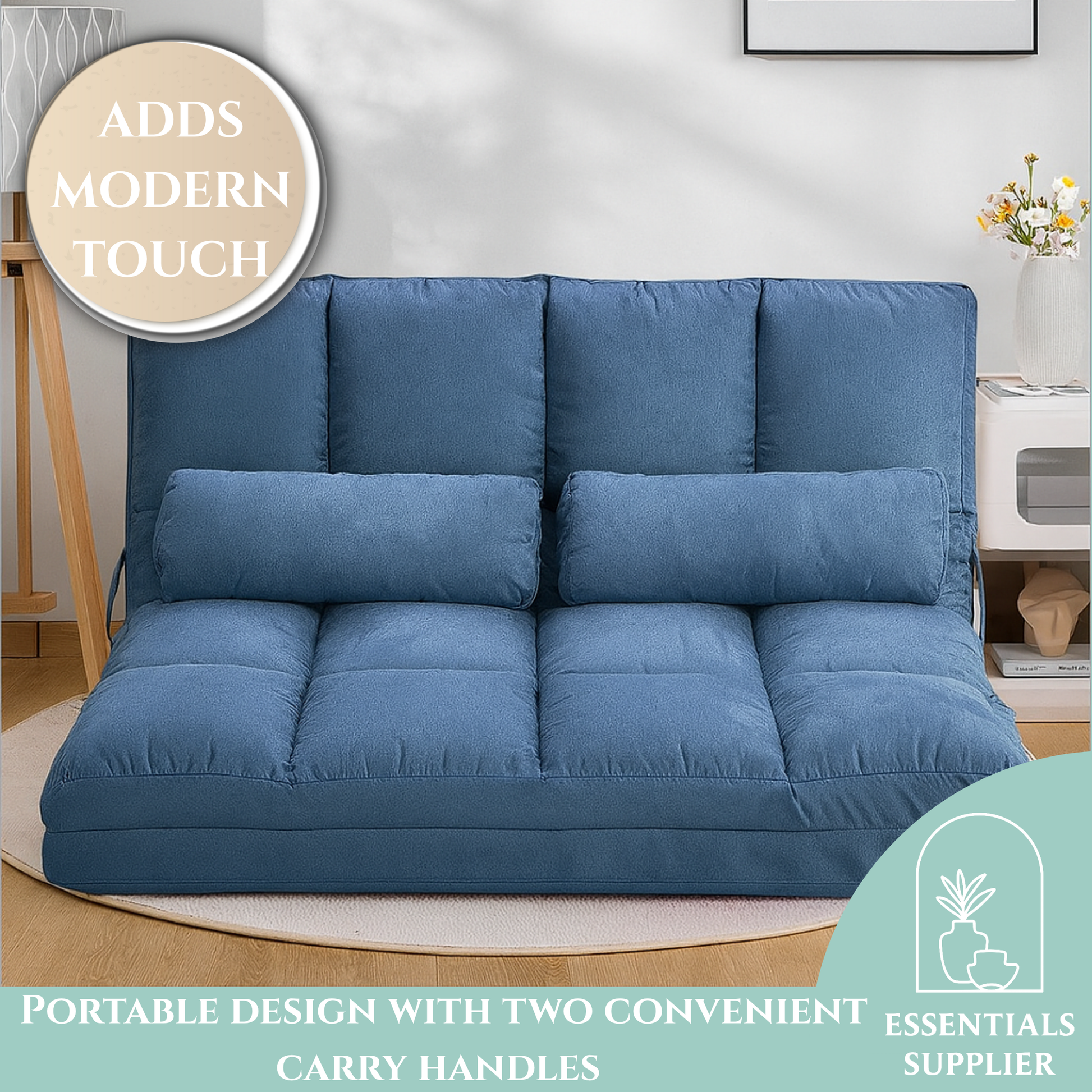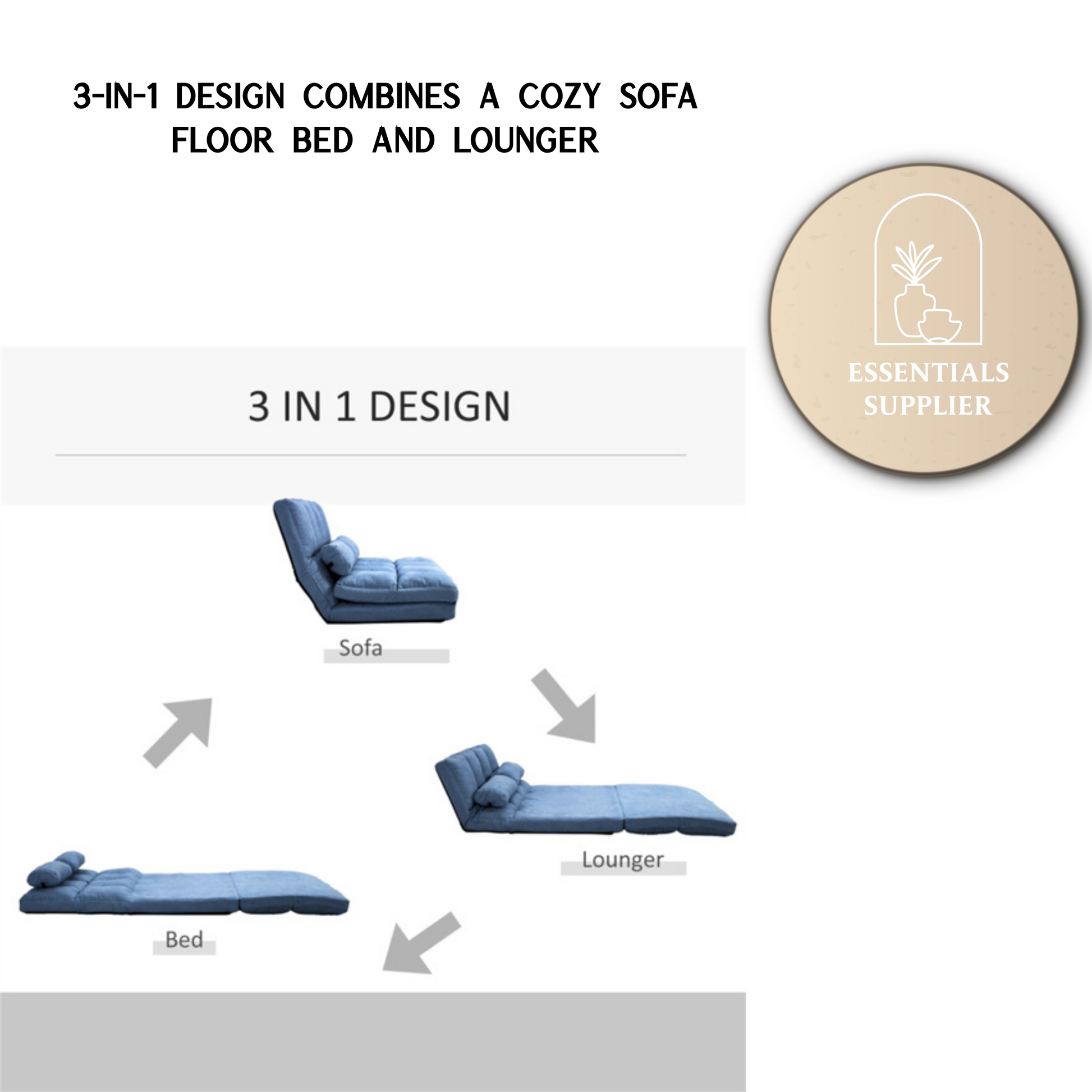 3-in-1 Adjustable Floor Sofa Bed with Backrest & Headrest – Blue