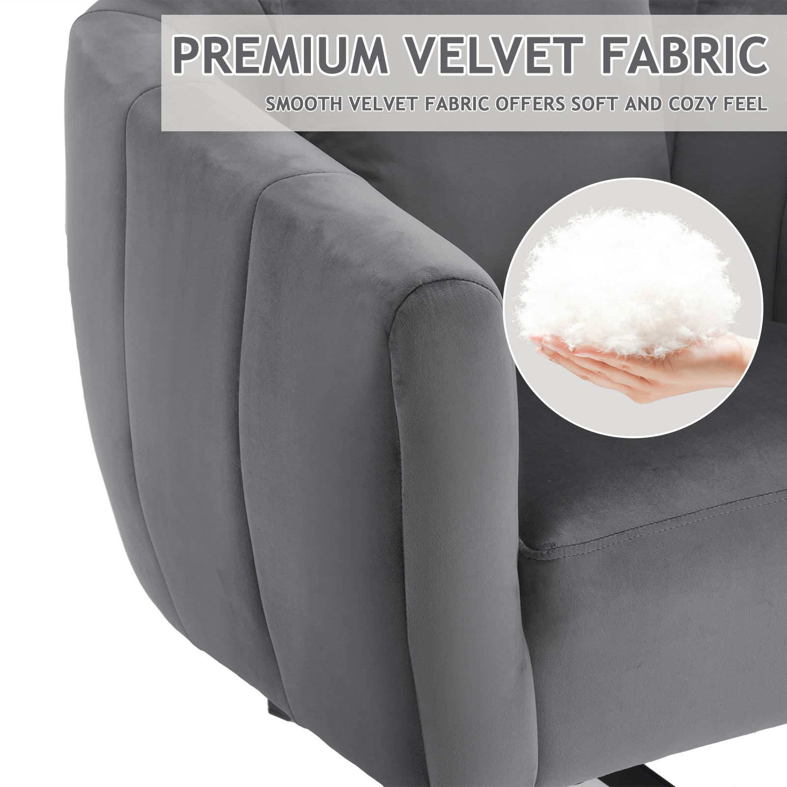 360° Swivel Velvet Accent Chair with Fluffy Cushion – Gray
