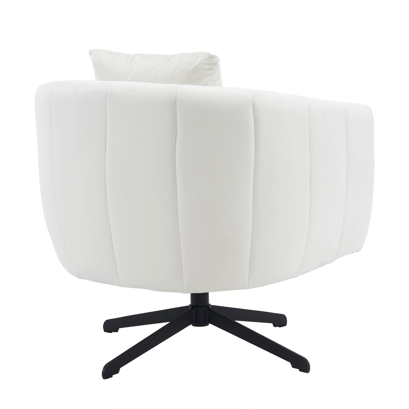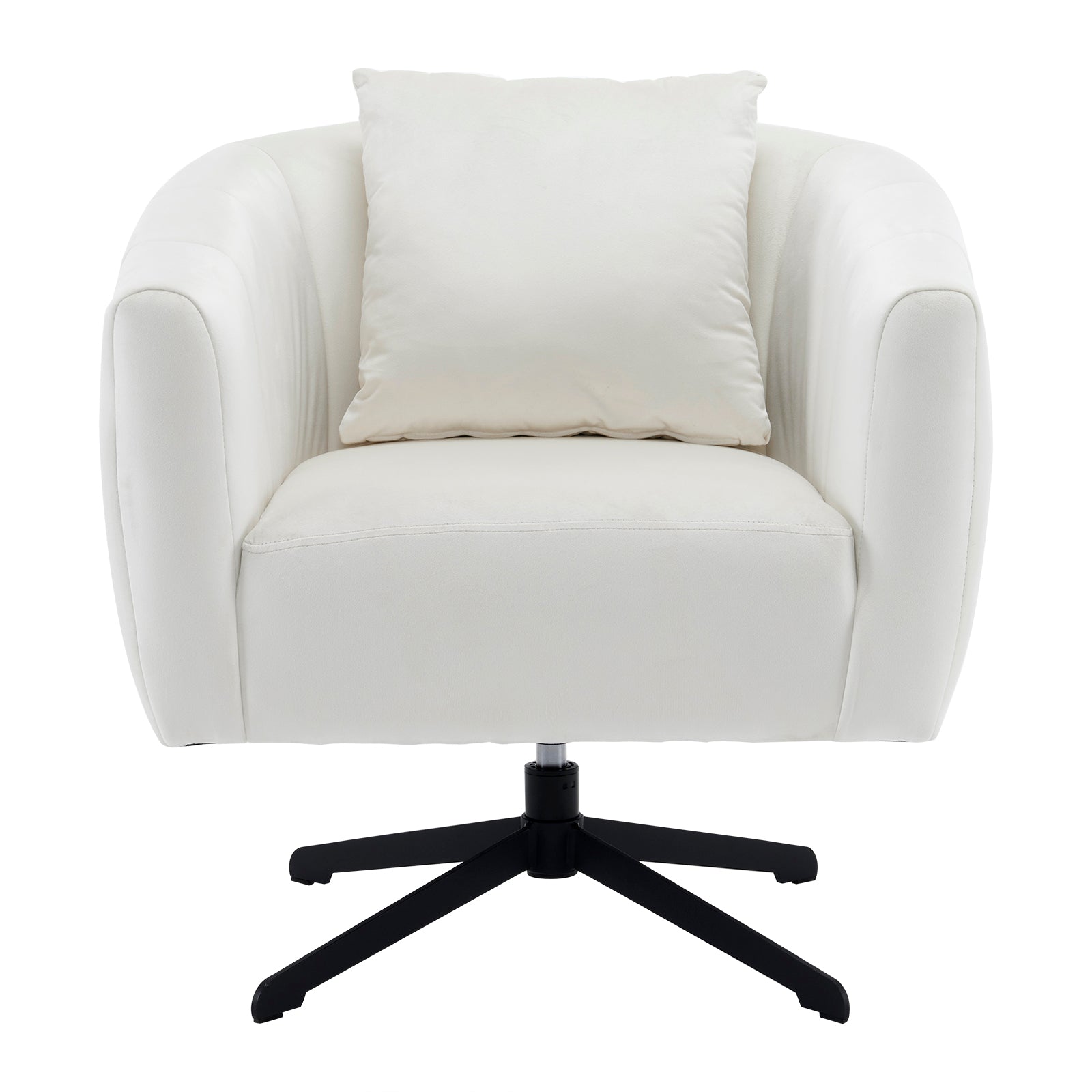 360° Swivel Velvet Accent Chair with Fluffy Cushion – Off White