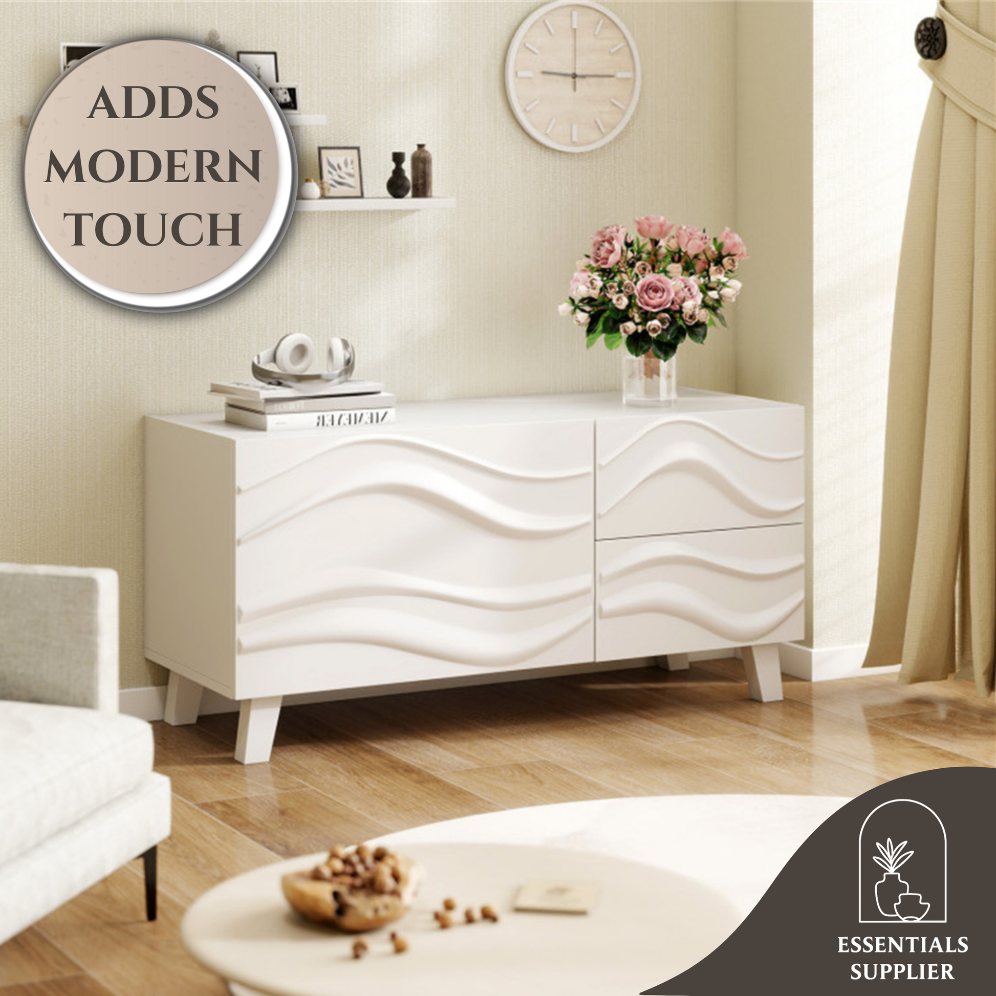38" White TV Cabinet with Drawers – Stylish Media Console & Storage Stand