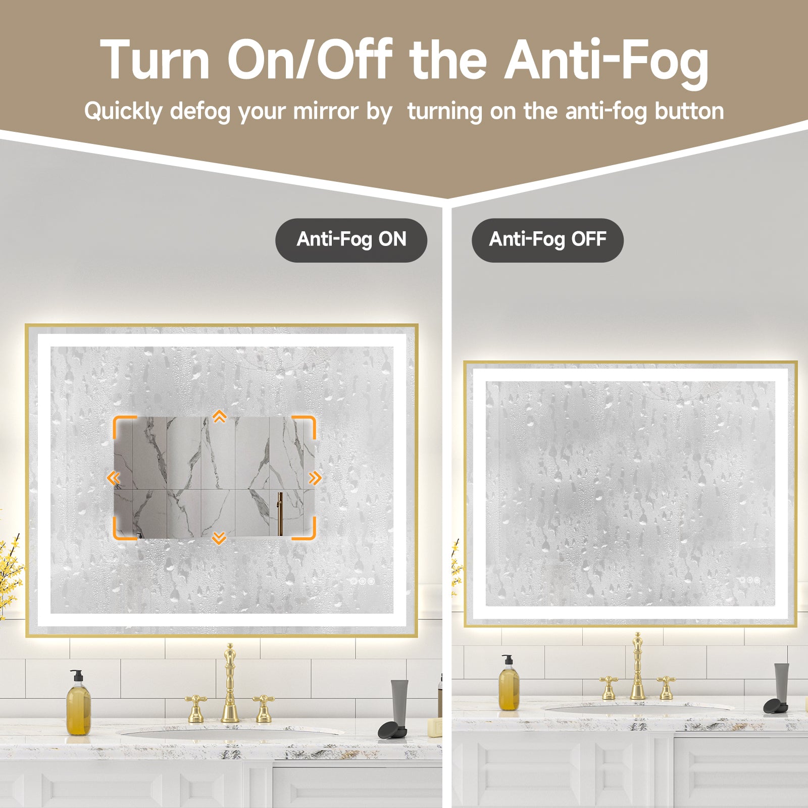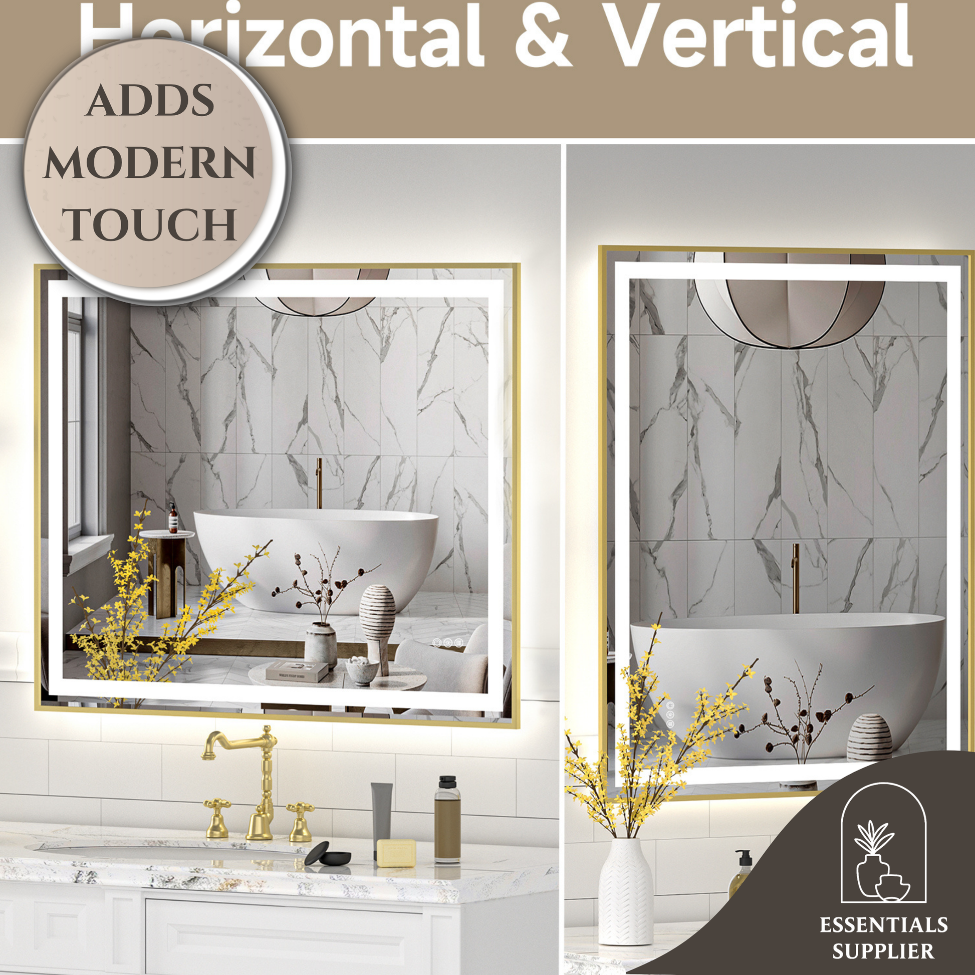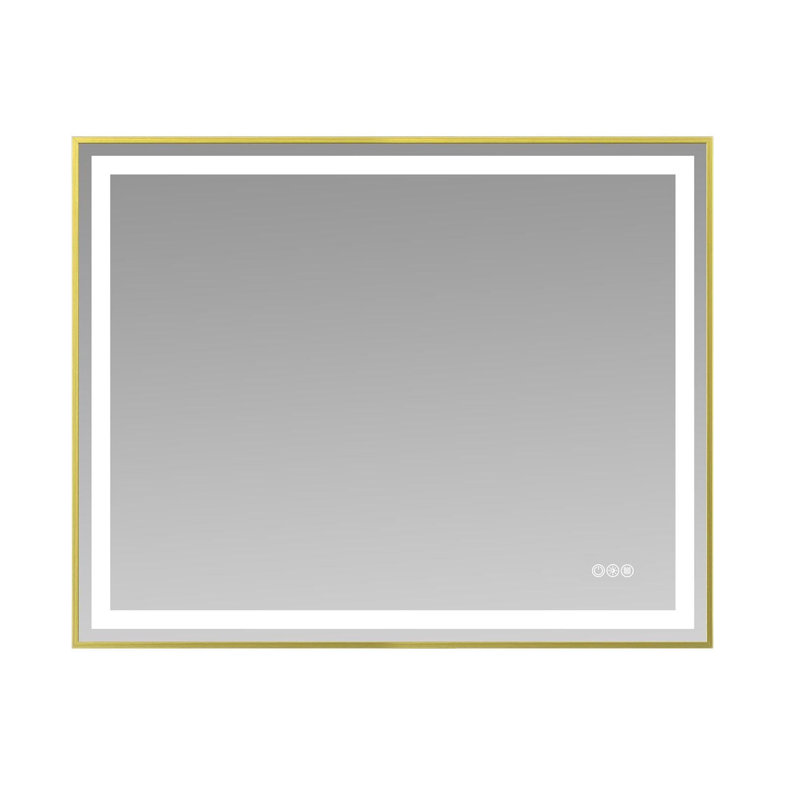 40x32" Gold Framed LED Mirror with Dual Front & Back Light Strips