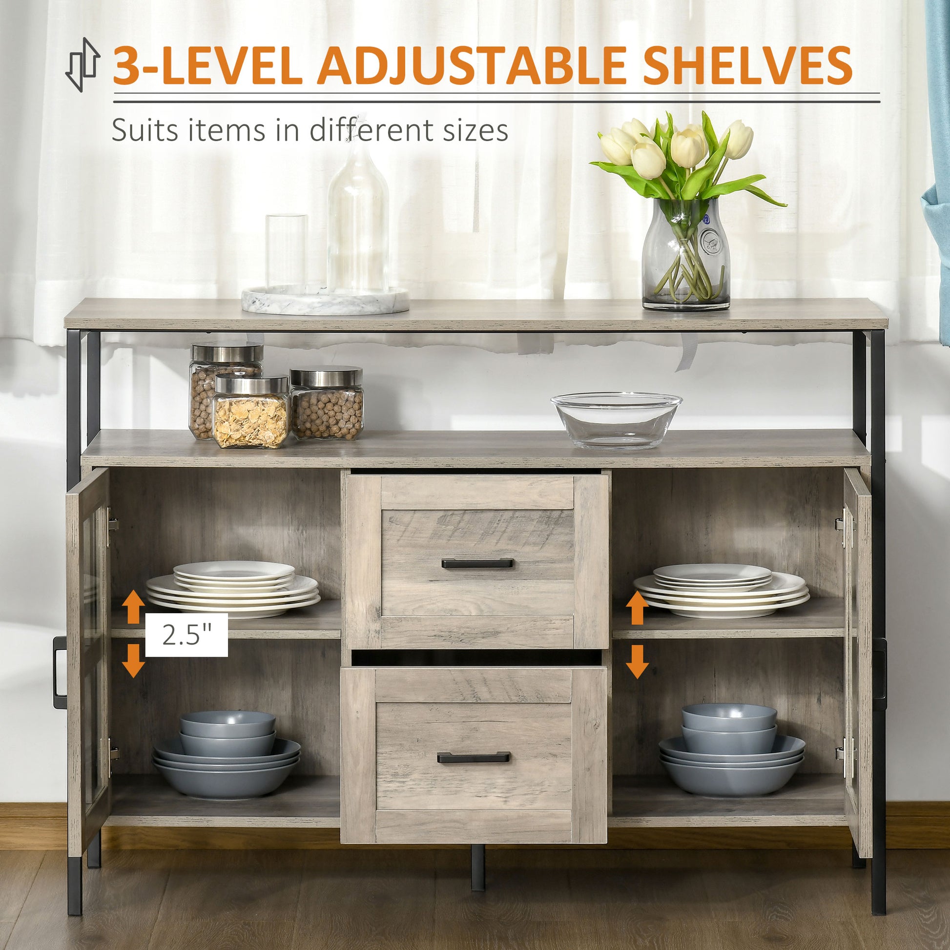 47" Industrial Gray Sideboard with Cabinets, Drawers & Open Shelf Storage