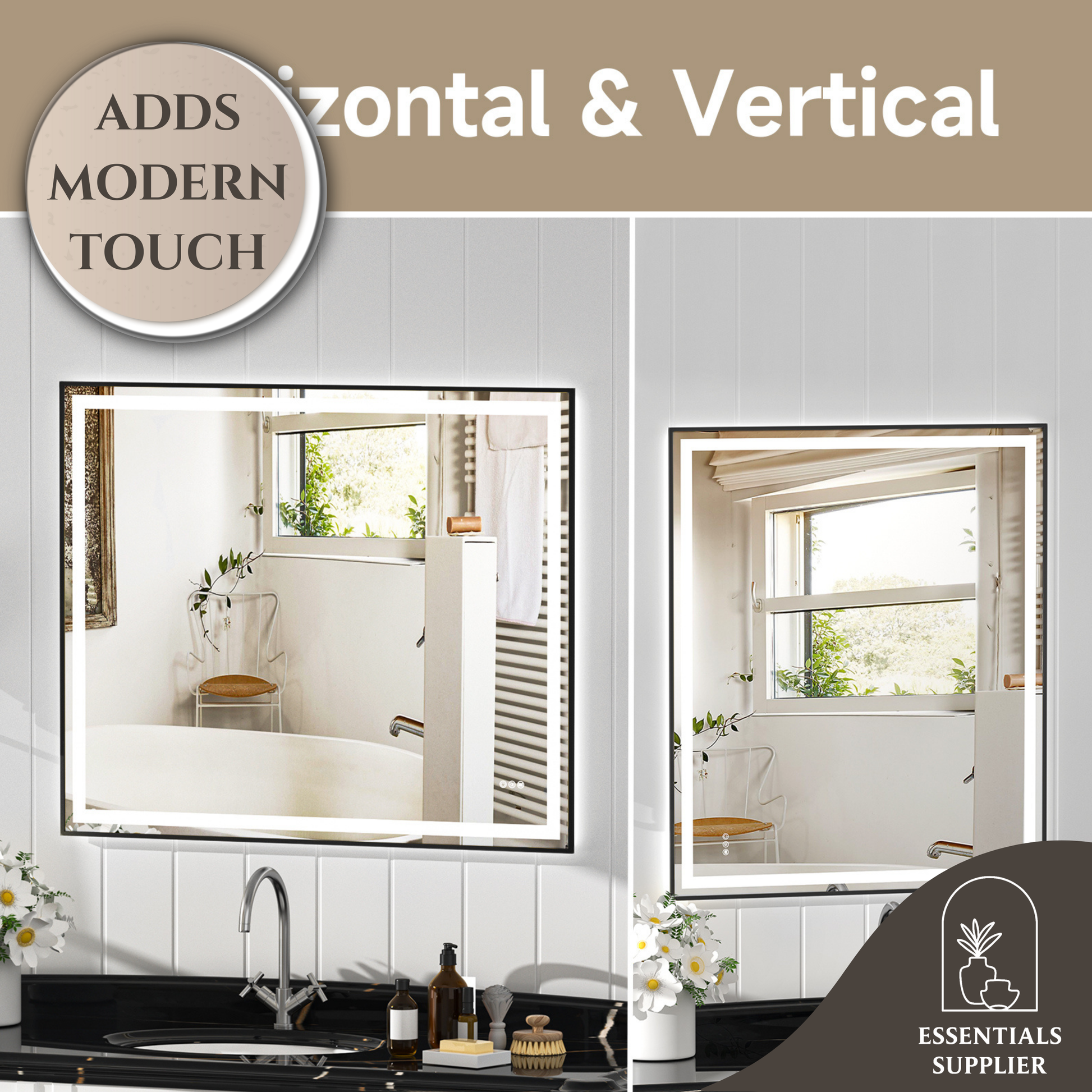 48x40" Black Framed LED Mirror with Dual Front & Back Light Strips