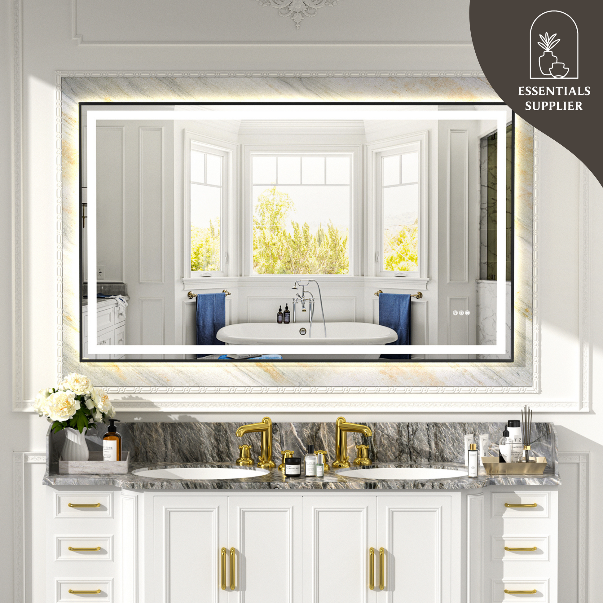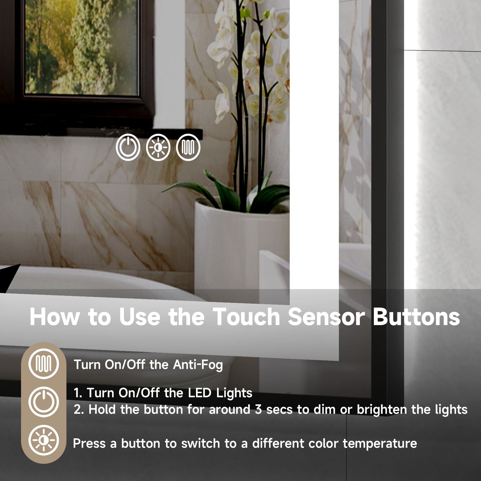 60x36" Black Framed LED Mirror with Dual Front & Back Light Strips