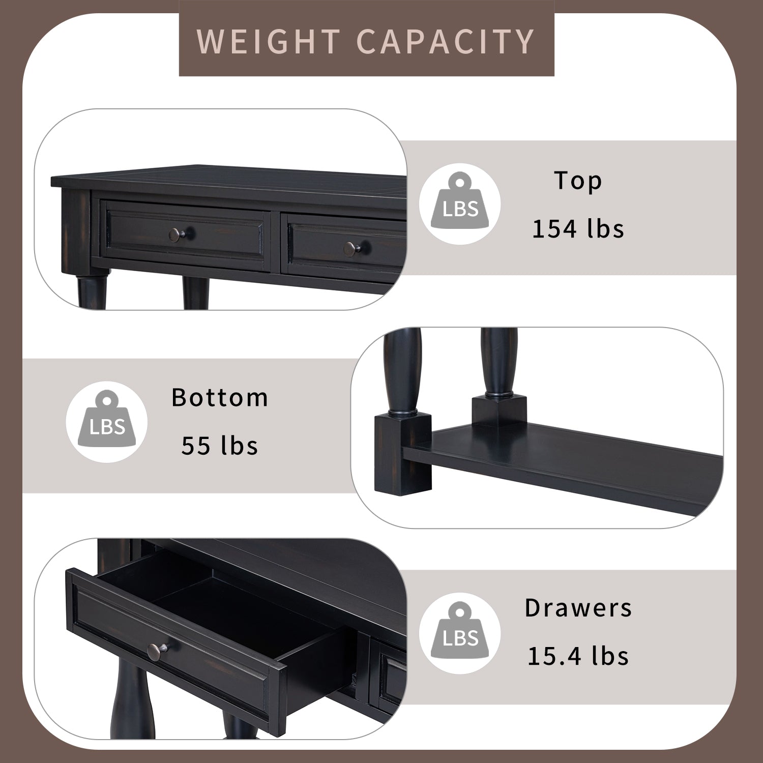 Strong Weight Capacity: Tabletop holds up to 154 lbs; lower shelf supports 55 lbs for decorative or functional use.