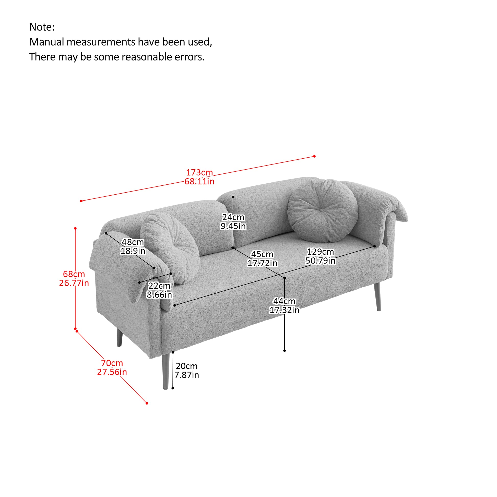 68.5" Modern Lamb Wool Sofa with Pillows for Small Living Spaces