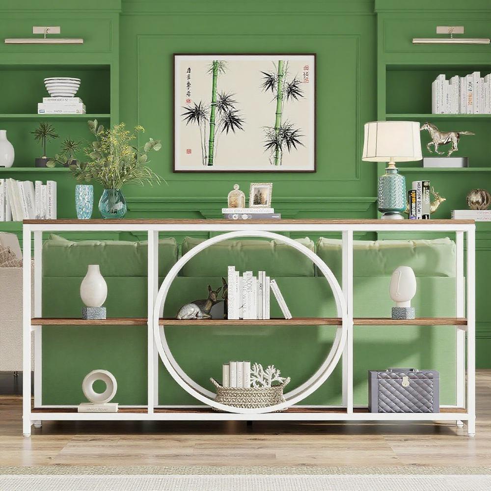 70.9" White Walnut Console Table with 3-Tier Shelves – Modern Industrial Accent