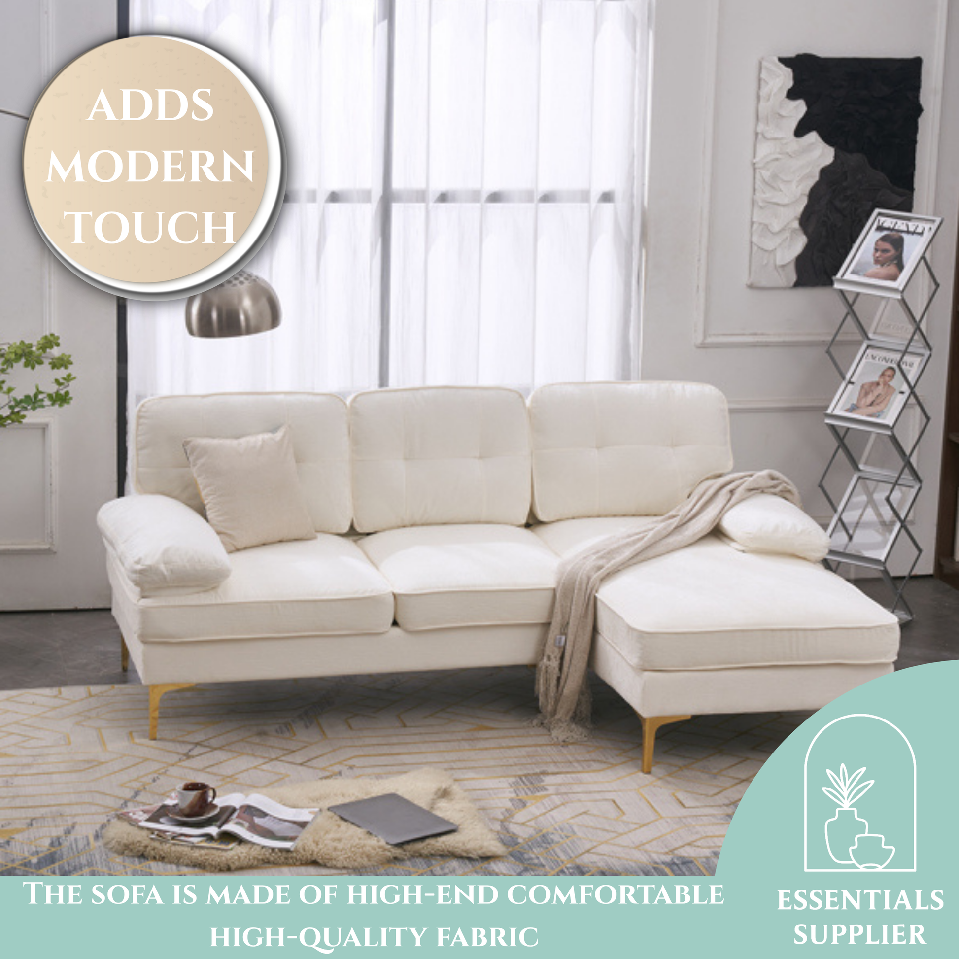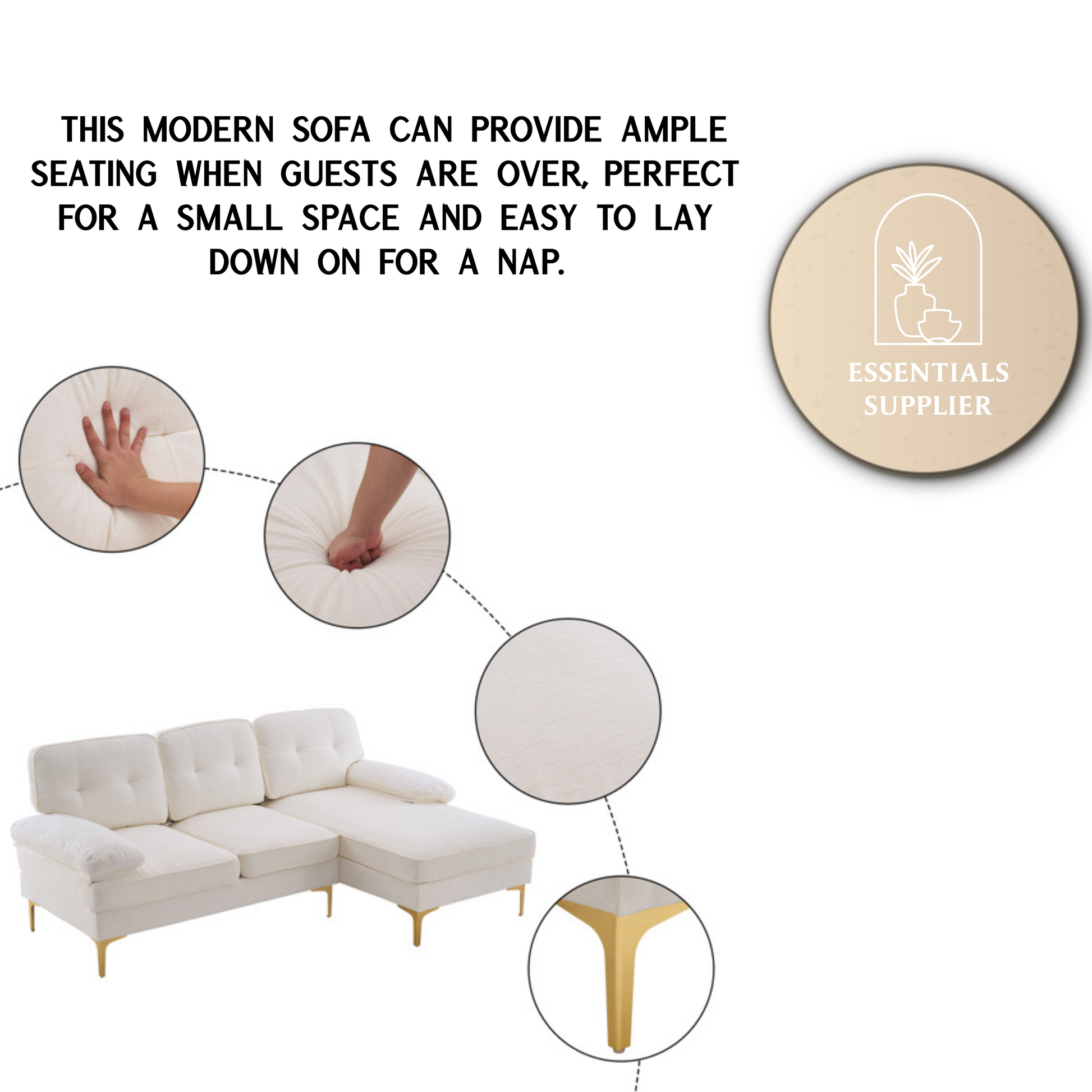 ✅ Modern & Minimalist Design – Clean beige color with stylish gold-plated legs fits any home decor.