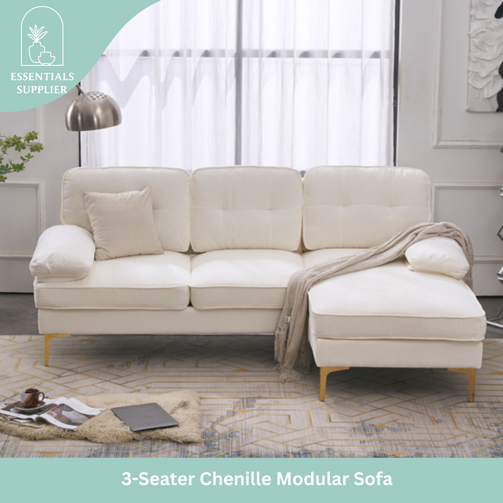 ✅ Spacious Comfort – L-shaped 3-seater sofa accommodates up to 4 people with firm, cozy cushions.