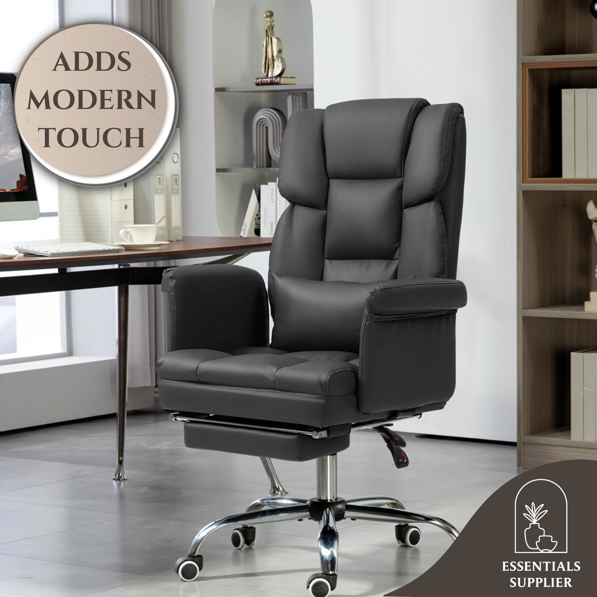 Black Massage Office Chair with Reclining Back, Footrest & PU Leather Finish