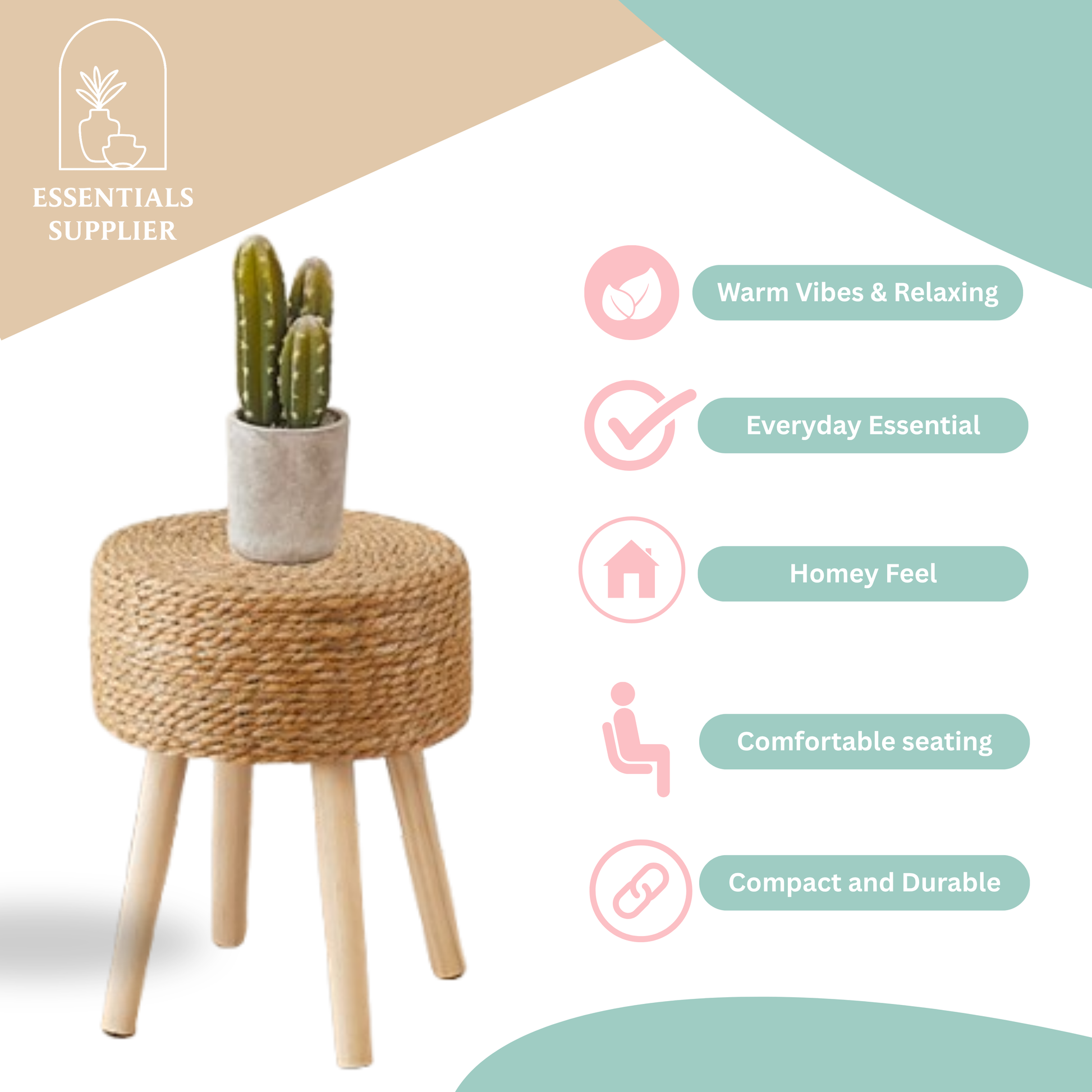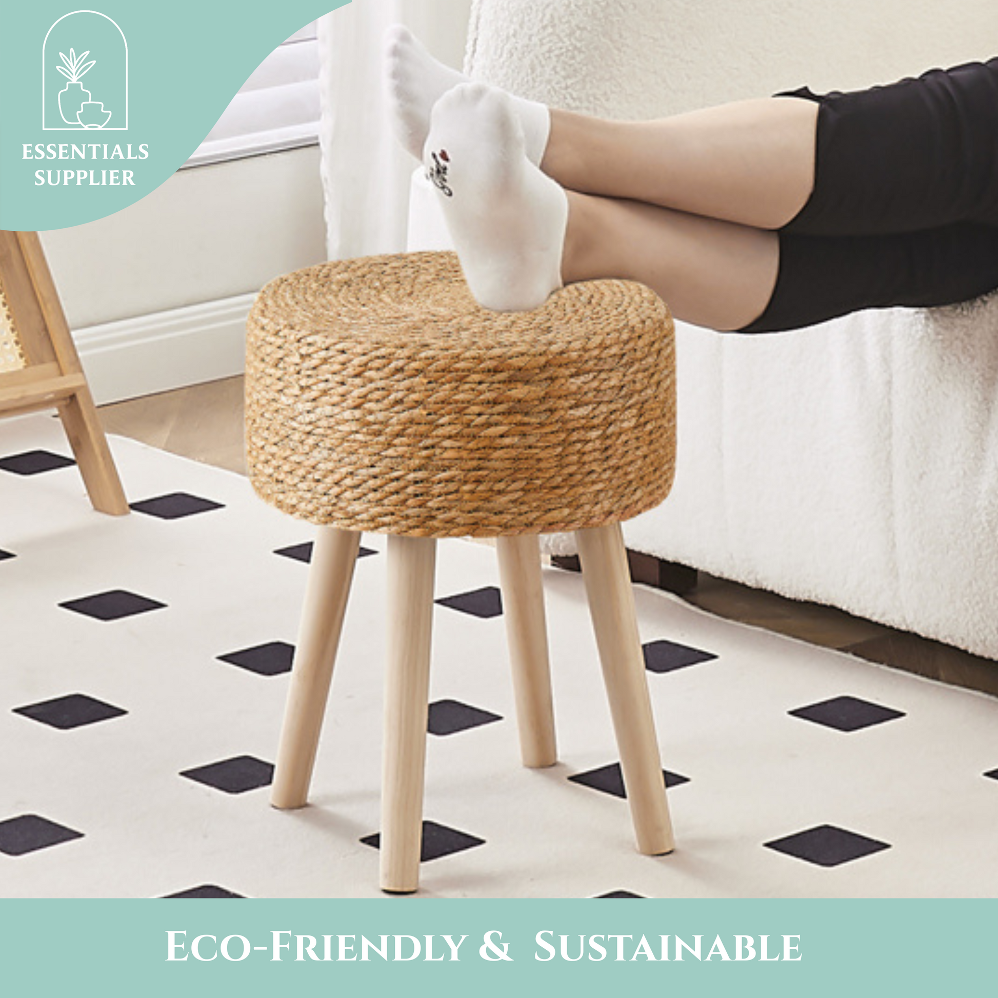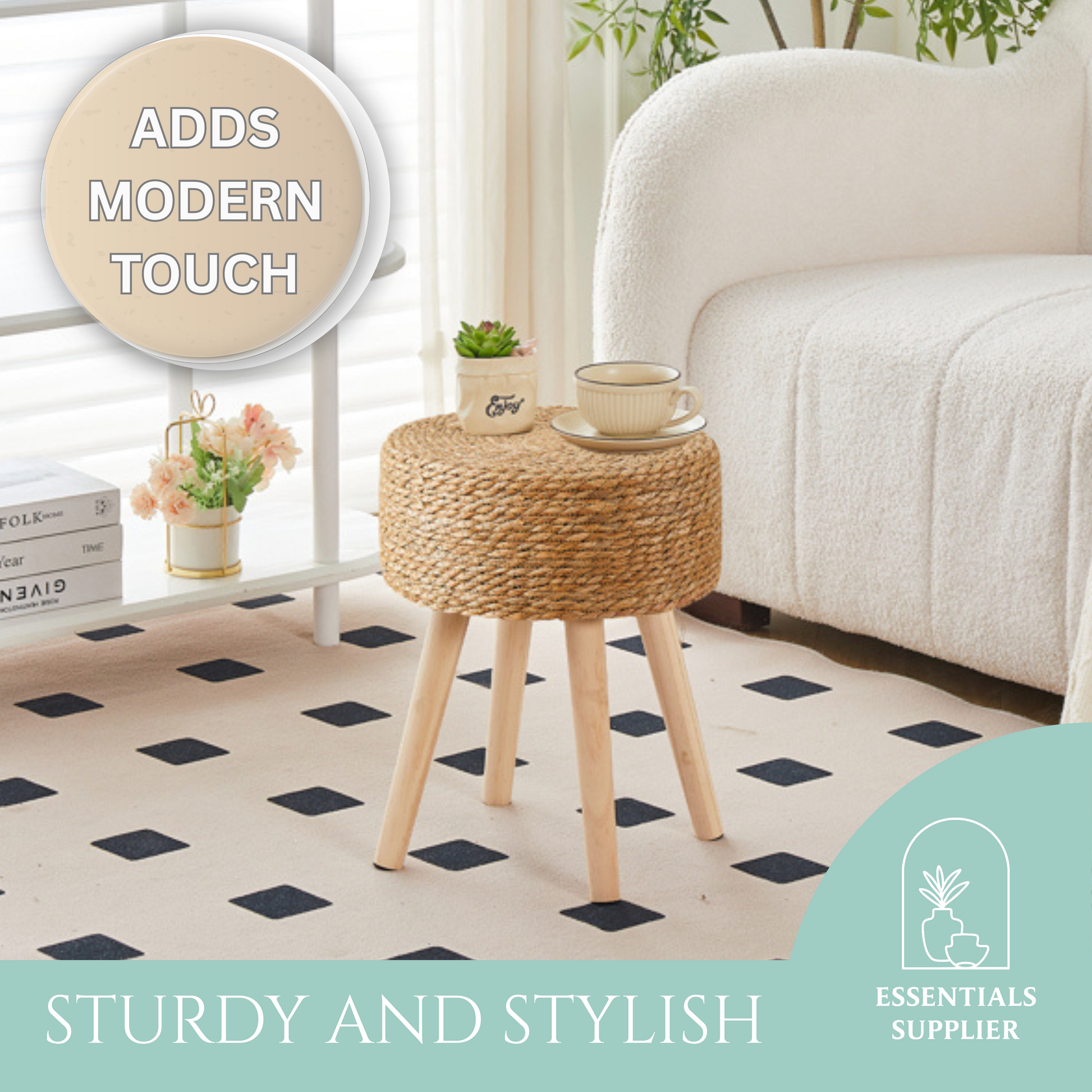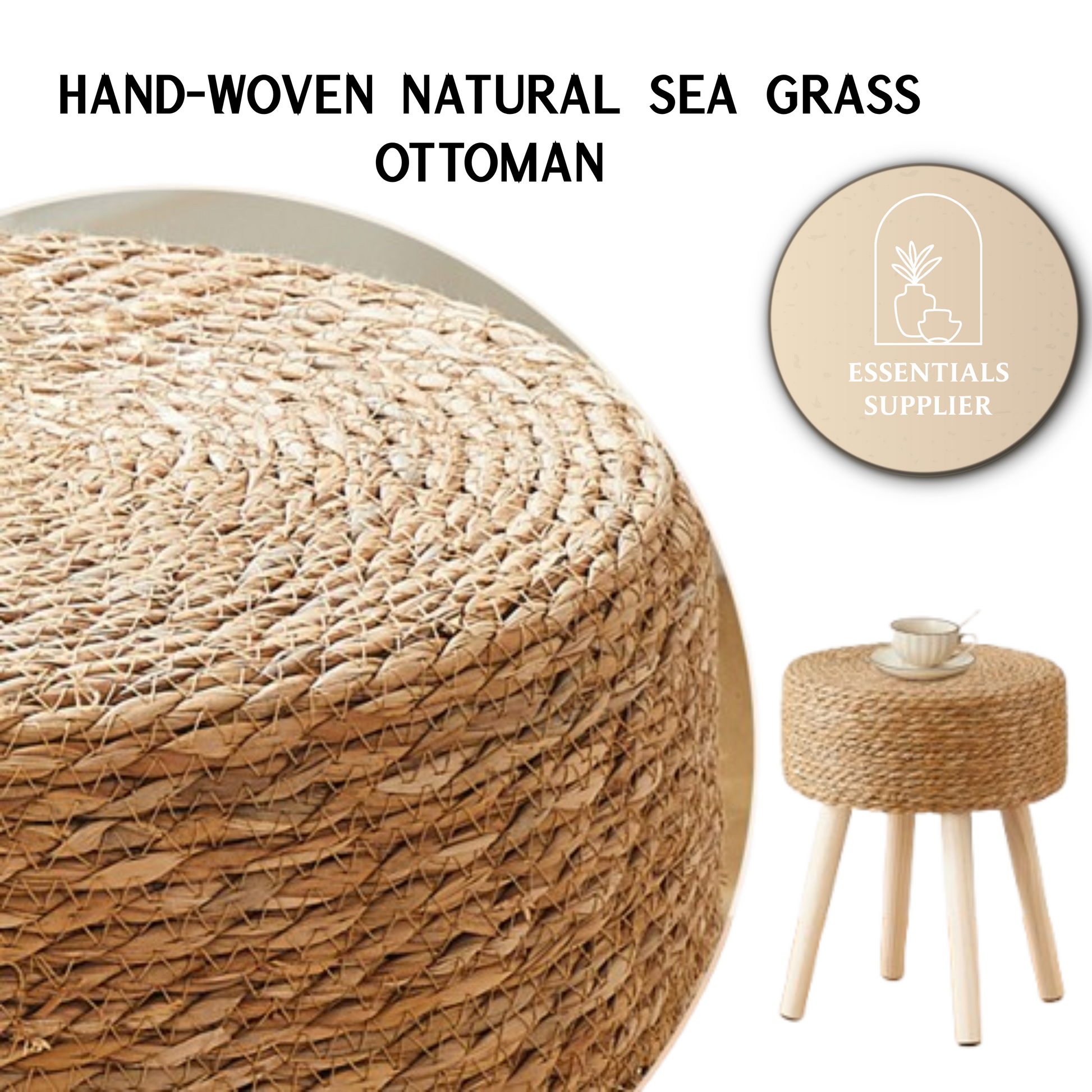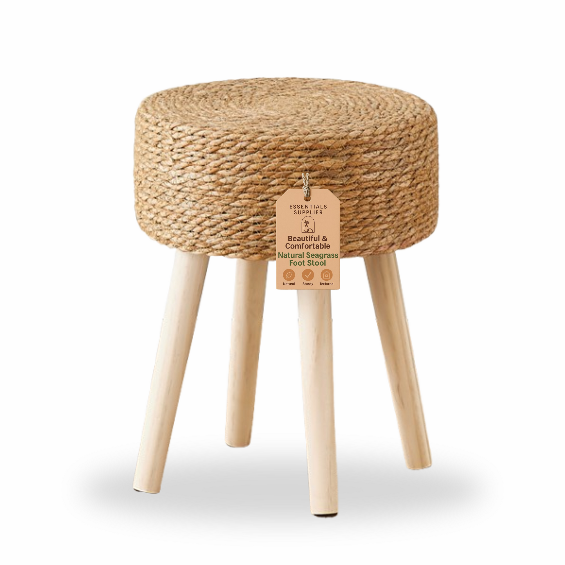 Essentials Supplier Seagrass Ottoman Footstool – Solid Wood Legs, Handwoven