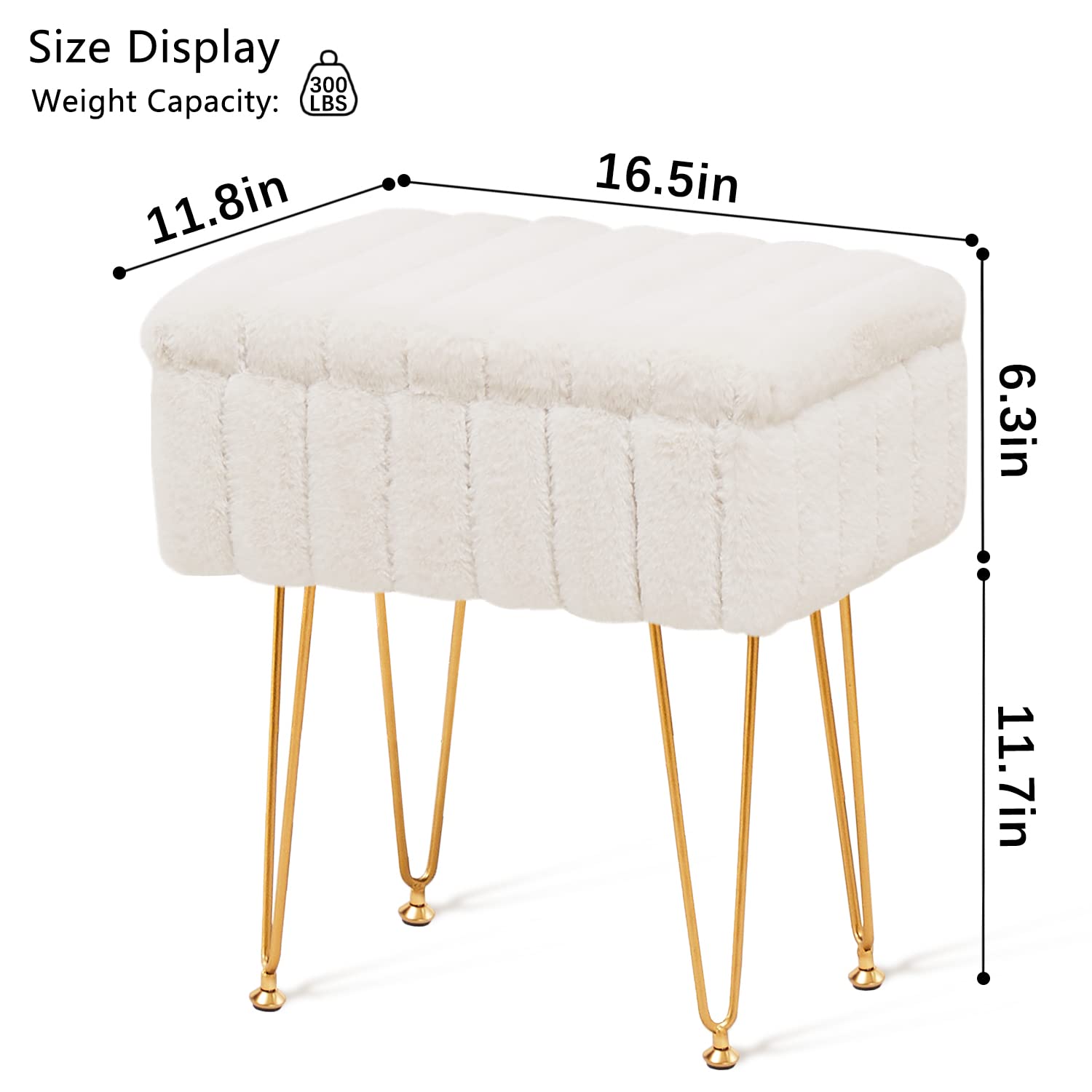 Faux Fur Ottoman with Storage – Vanity Stool & Footrest for Bedroom, Cream
