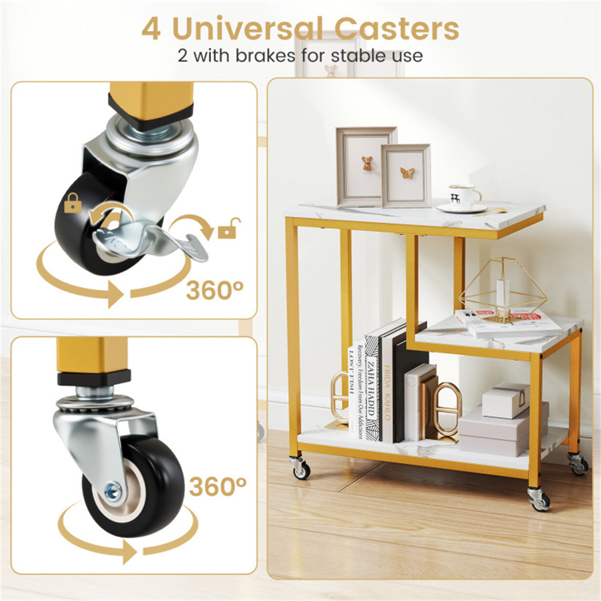 G-Shaped 3-Tier White End Table with Wheels – Mobile Storage Side Table