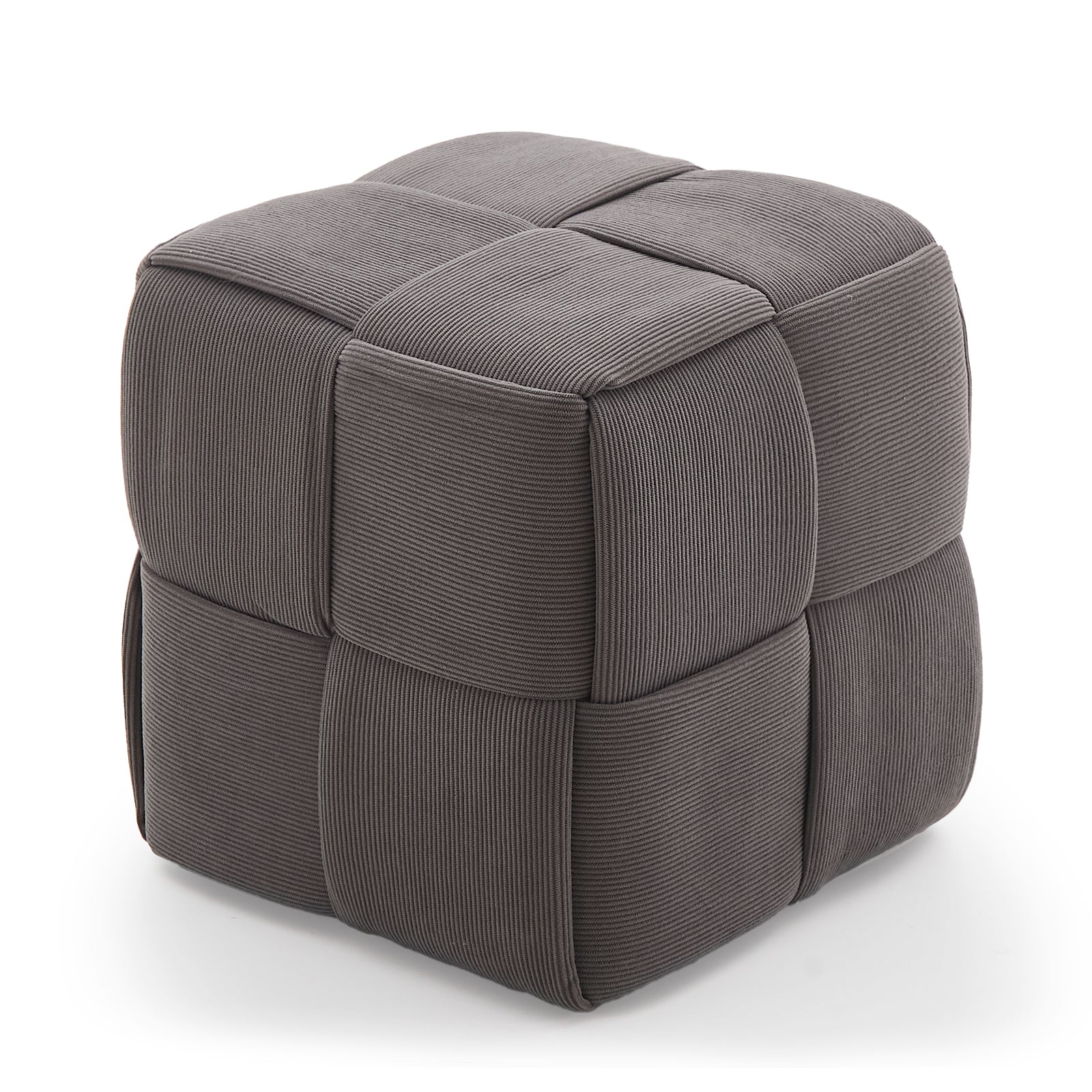 Grey Corduroy Ottoman Vanity Stool – Square Footrest for Bedroom & Entryway
