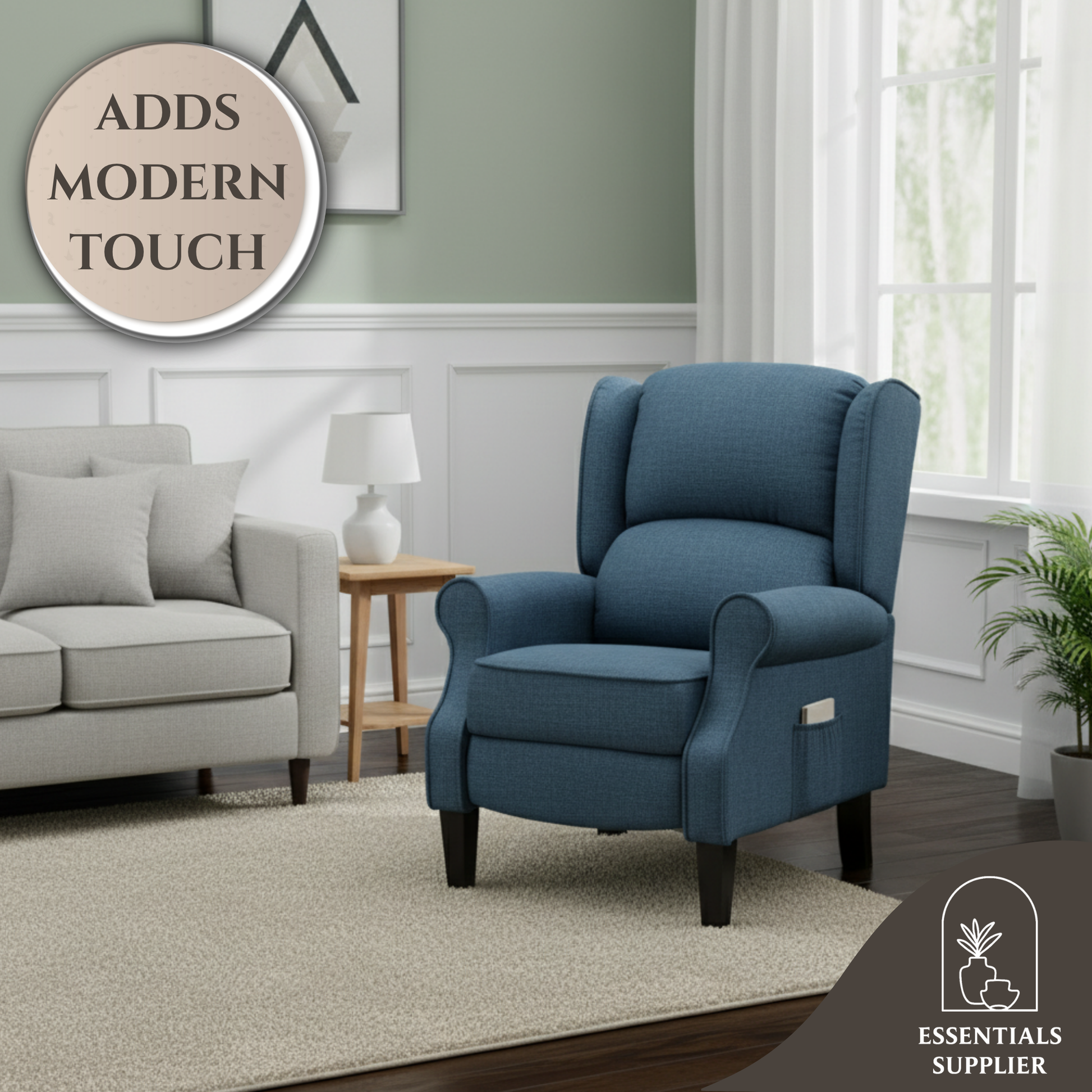 Heated Massage Recliner Chair with Lumbar Support – Manual Pushback, Blue
