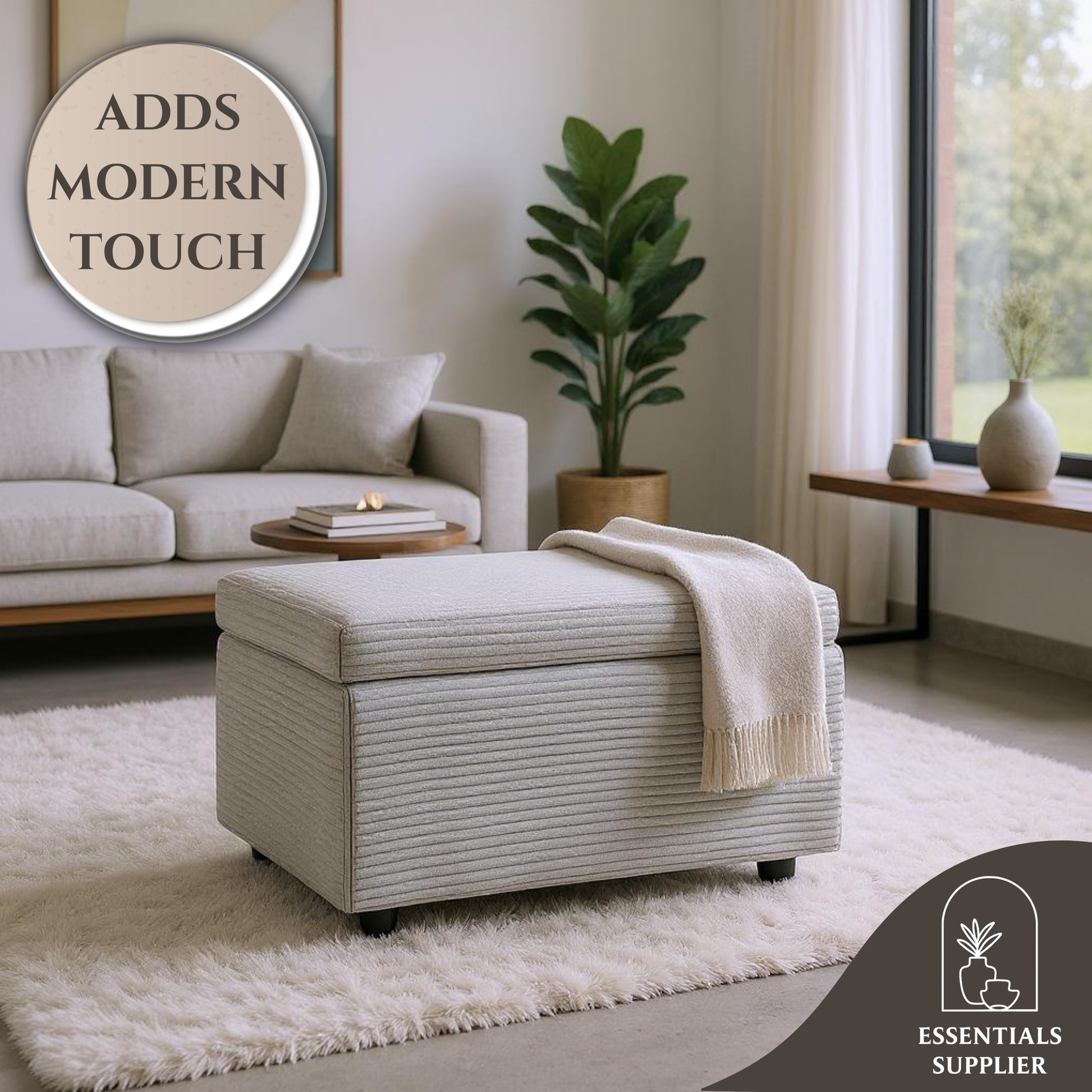 Light Gray Corduroy Storage Ottoman Bench with Hidden Compartment – 24.8