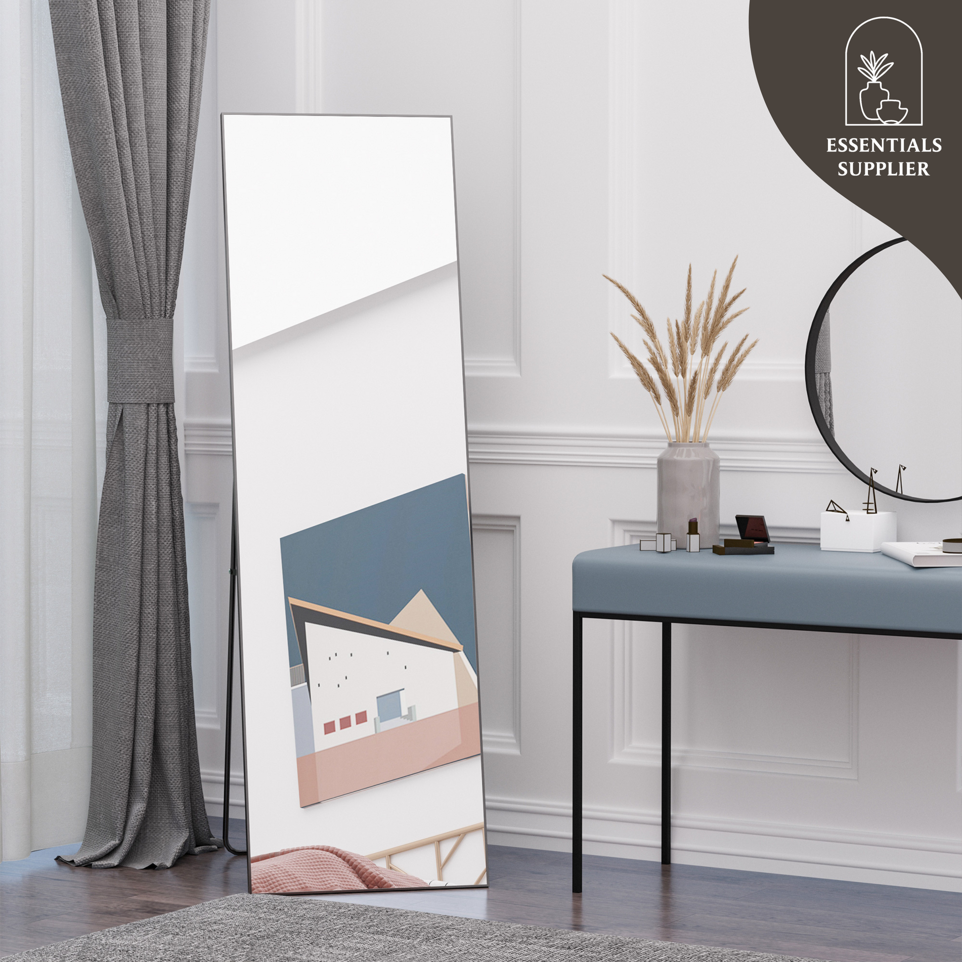 Modern Black Full-Length Dressing Mirror – Freestanding or Wall-Mount Design
