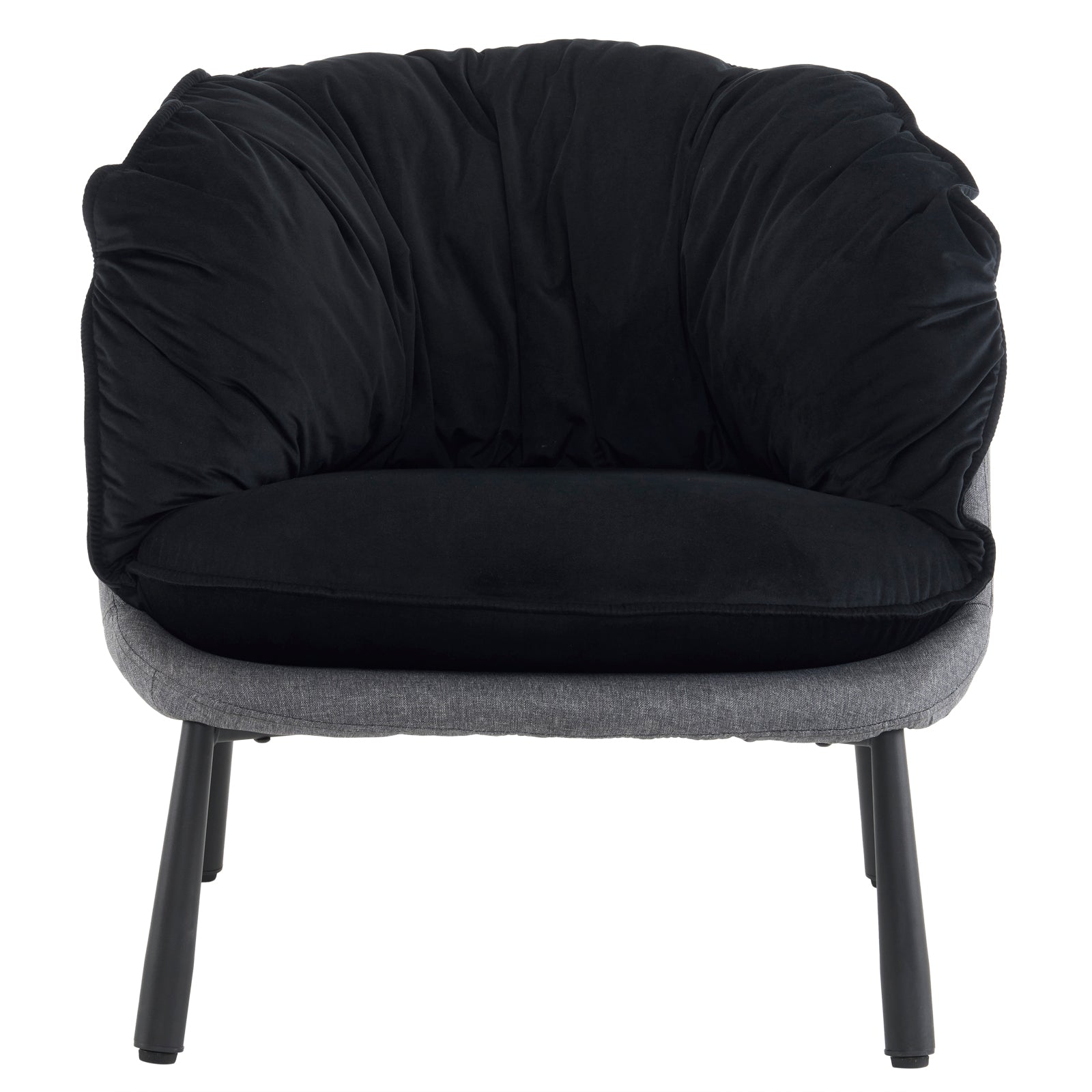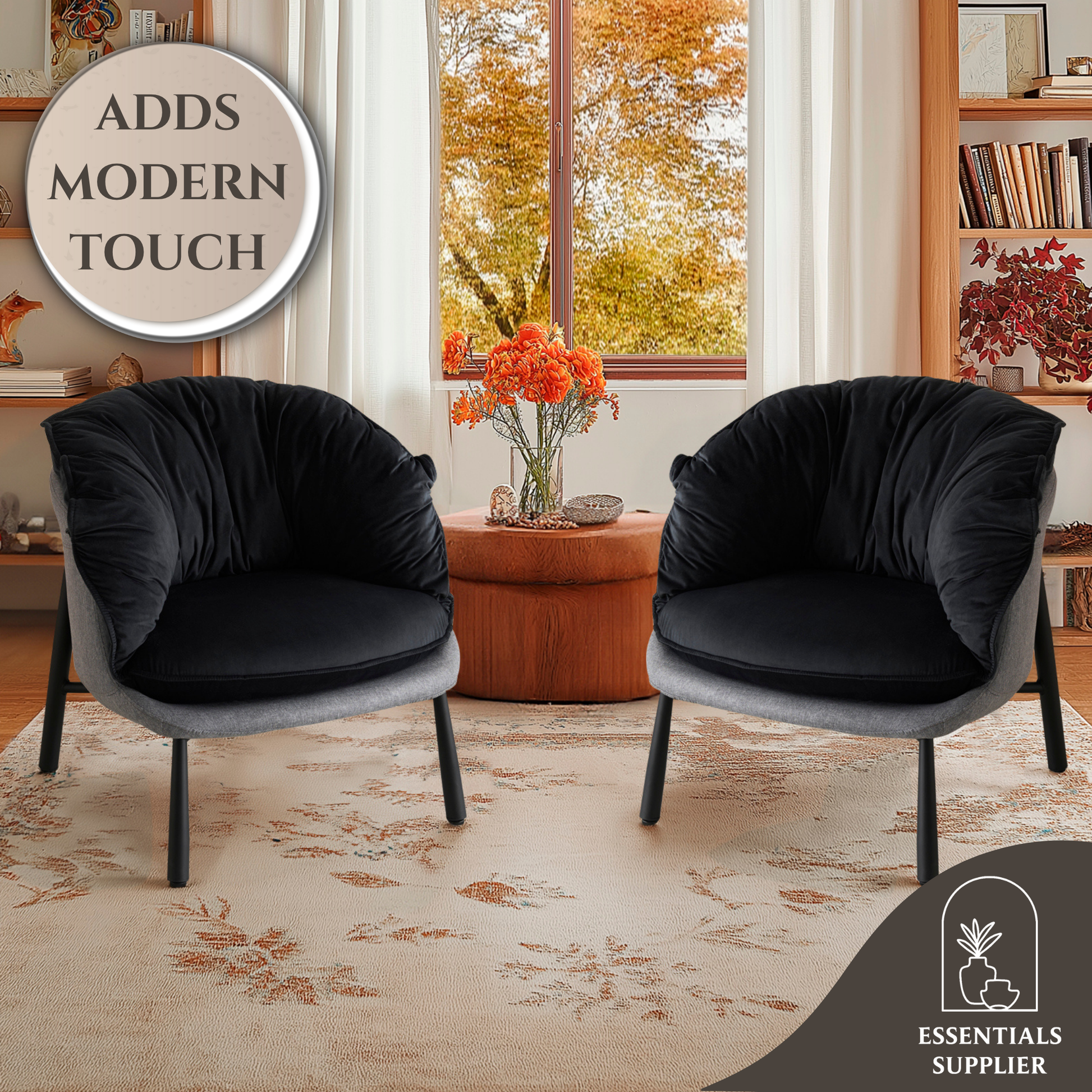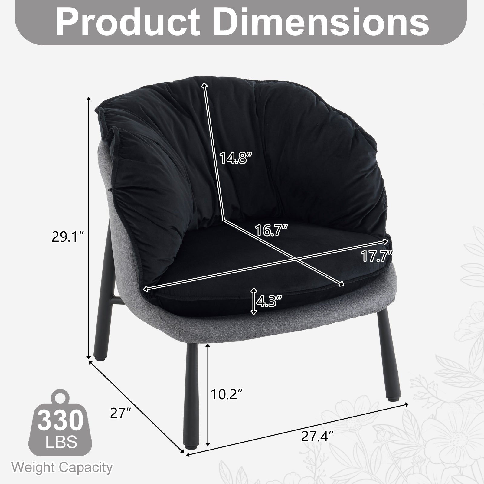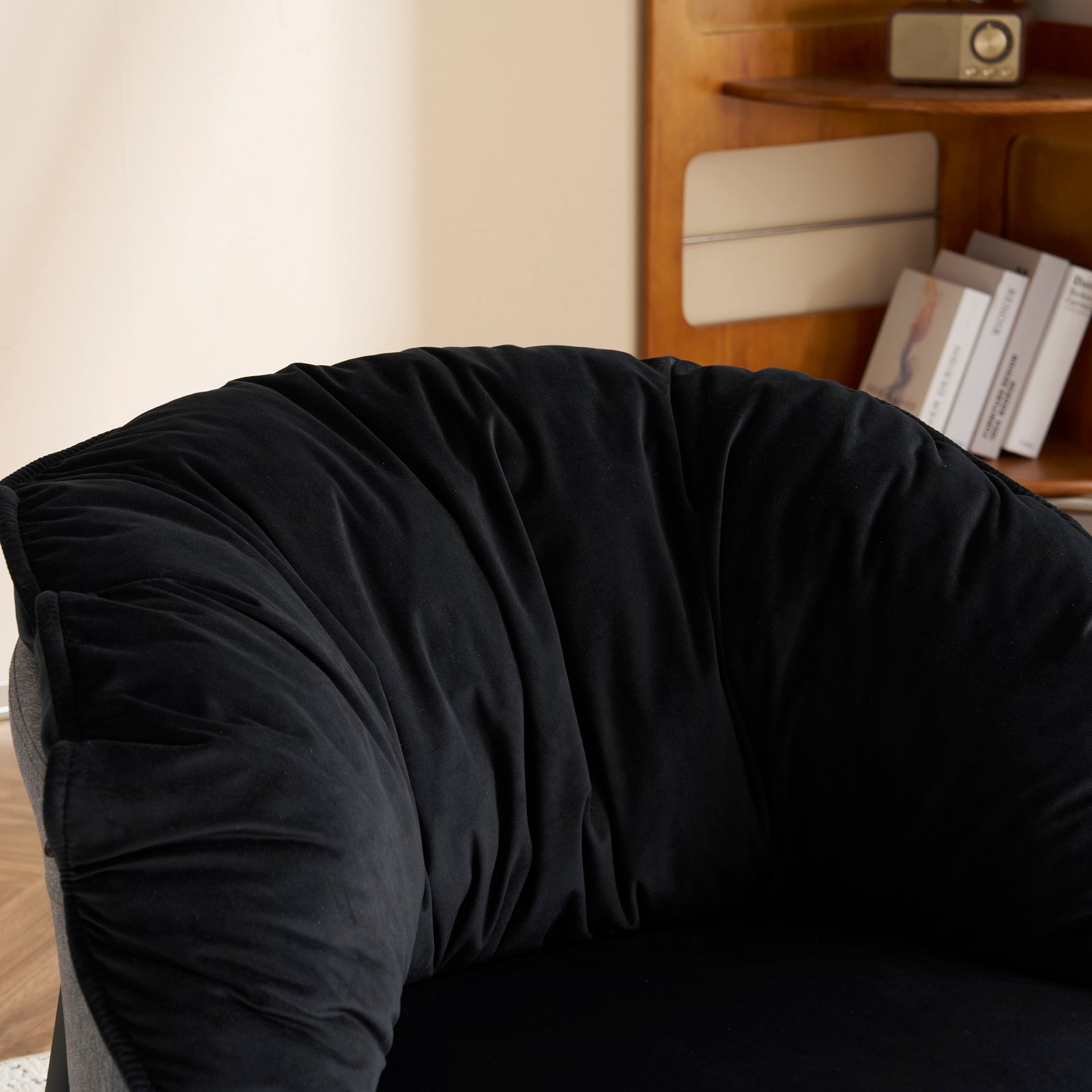 Modern Velvet Barrel Accent Chair with Metal Legs – Black Armchair