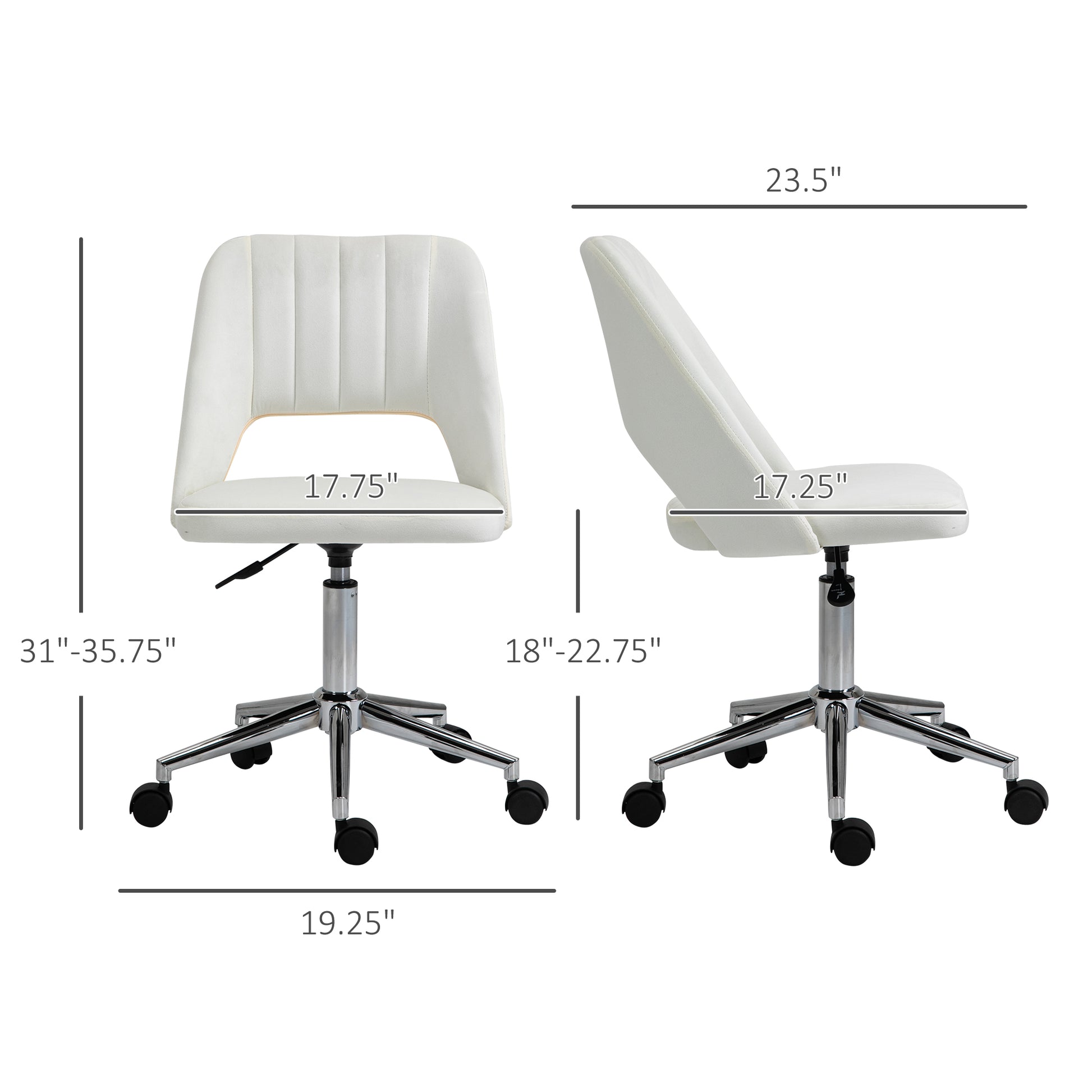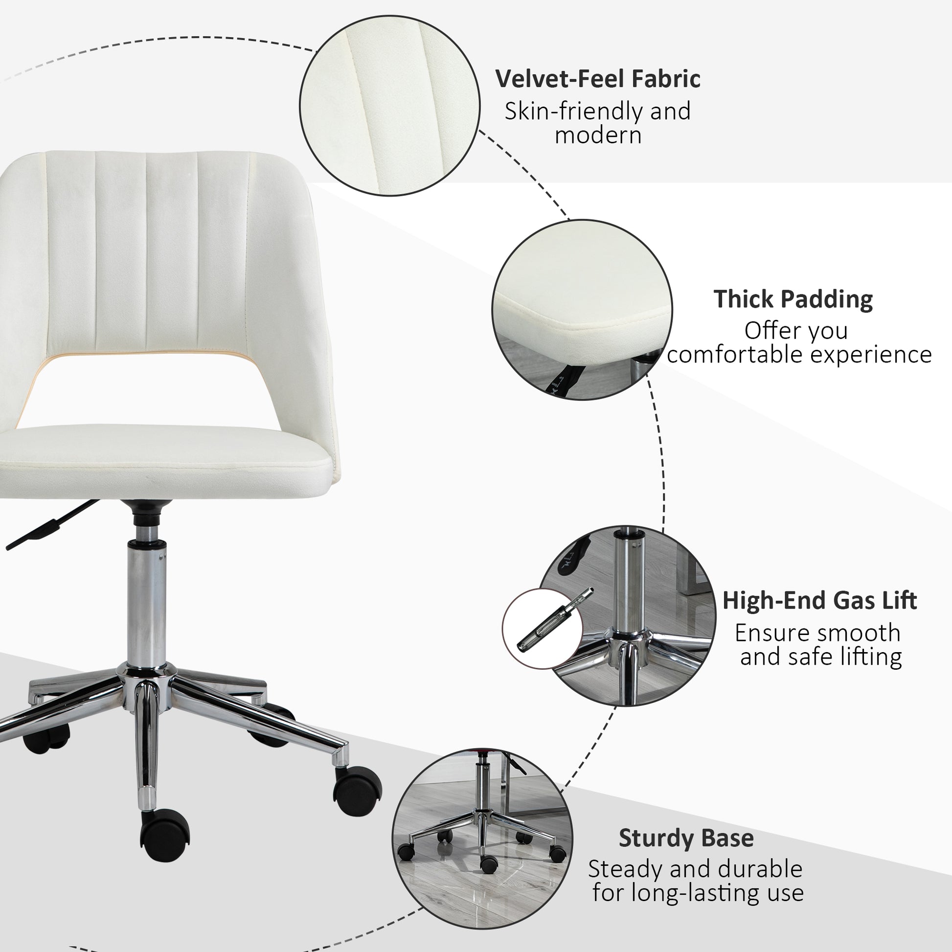 Modern White Velvet Office Chair – Adjustable Height, Swivel Base & Scallop Backrest