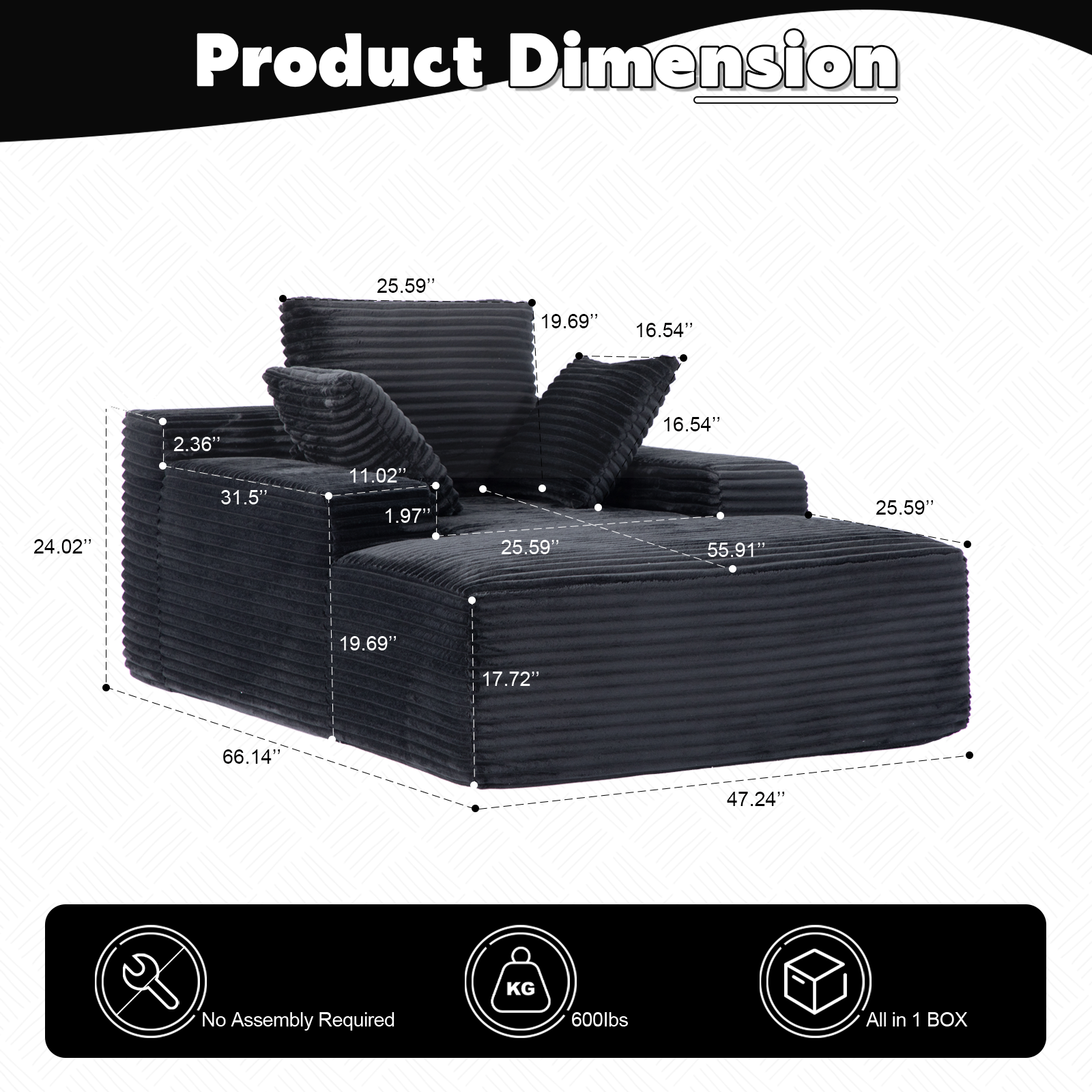 Oversized Chaise Lounge Chair – Plush Corduroy Cloud Couch with 3 Pillows, Black