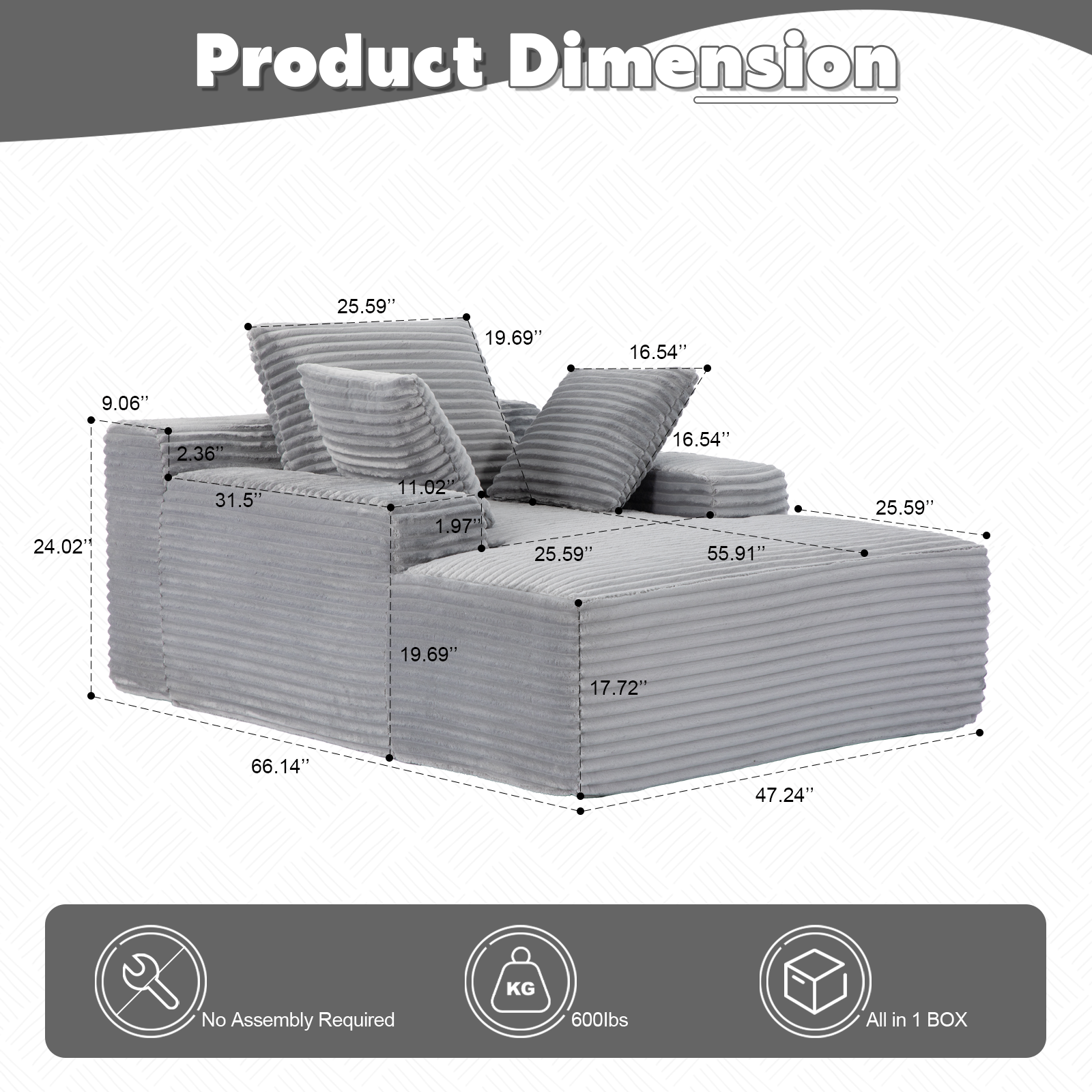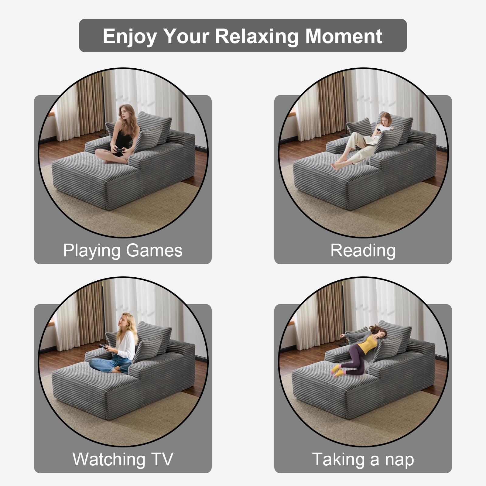 Oversized Chaise Lounge Chair – Plush Corduroy Cloud Couch with 3 Pillows, Grey