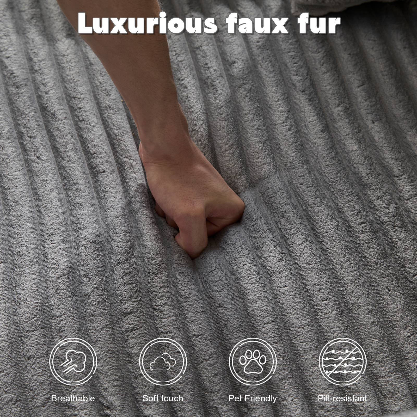 ✅ Modern & Stylish Design – Upholstered in soft striped faux fur corduroy, this oversized chaise lounge blends seamlessly with modern, minimalist, and European-style décor, adding cozy elegance to any living space.