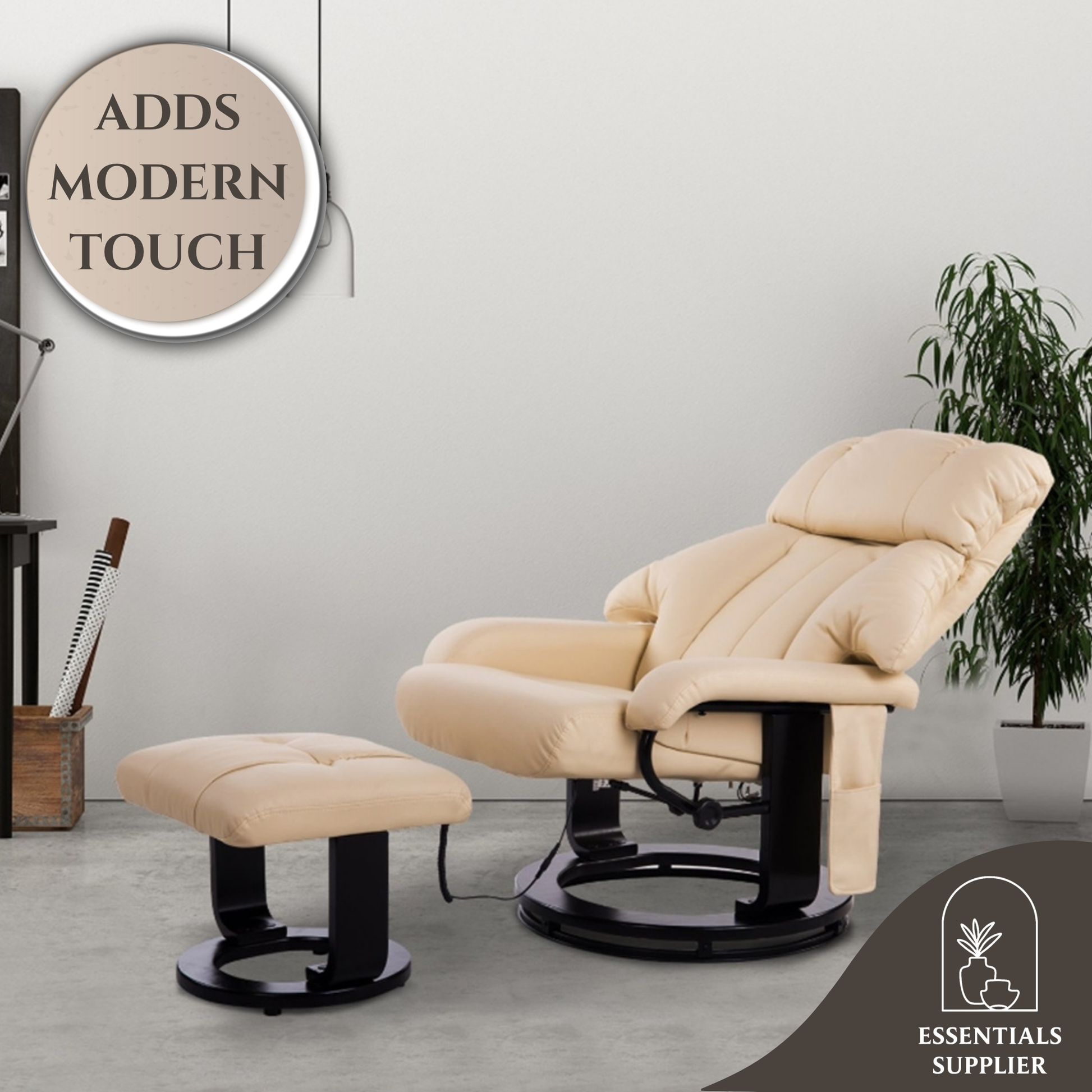 PU Leather Massage Recliner Chair with Ottoman & Remote, Beige
