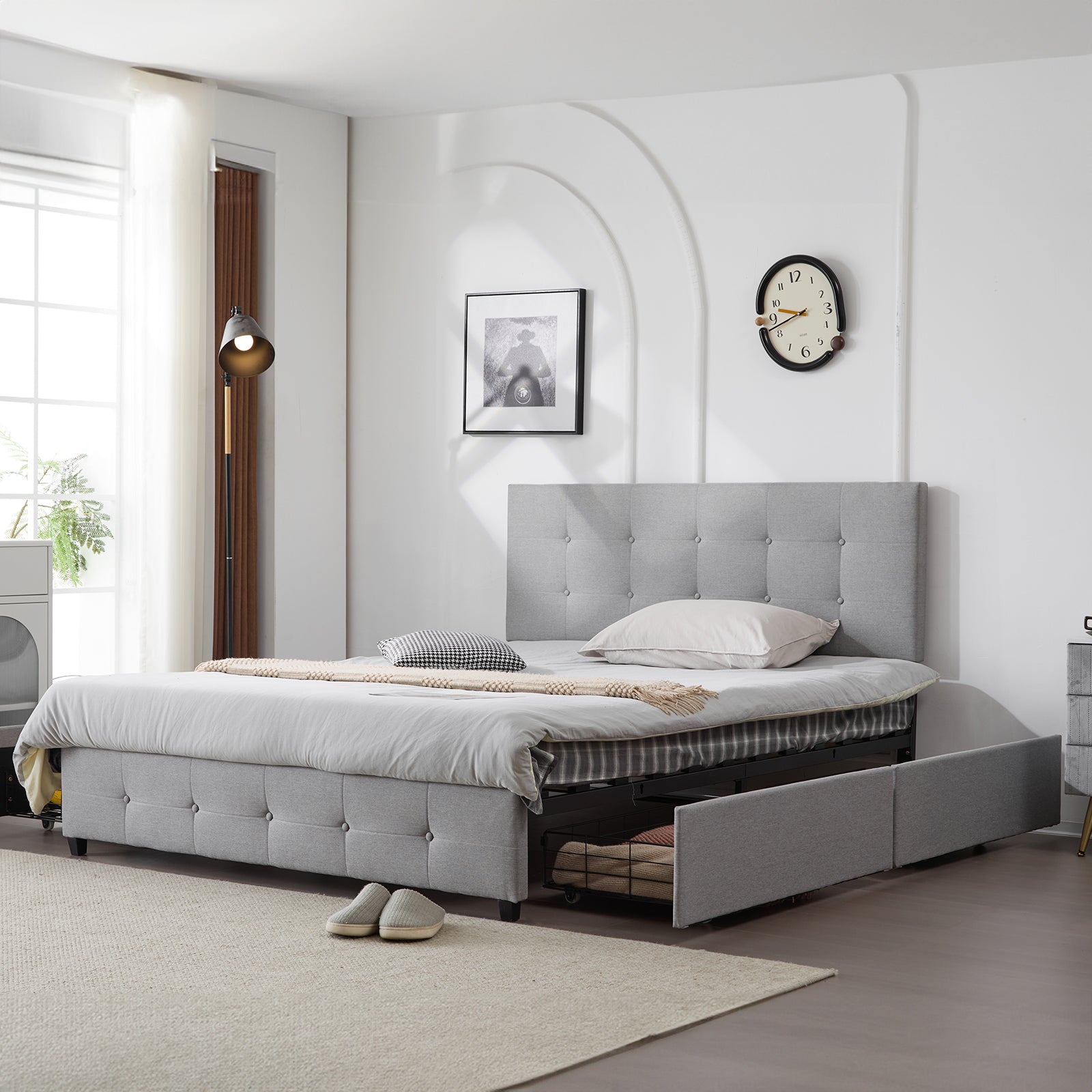 Queen Upholstered Platform Bed with 4 Drawers & Adjustable Tufted Headboard