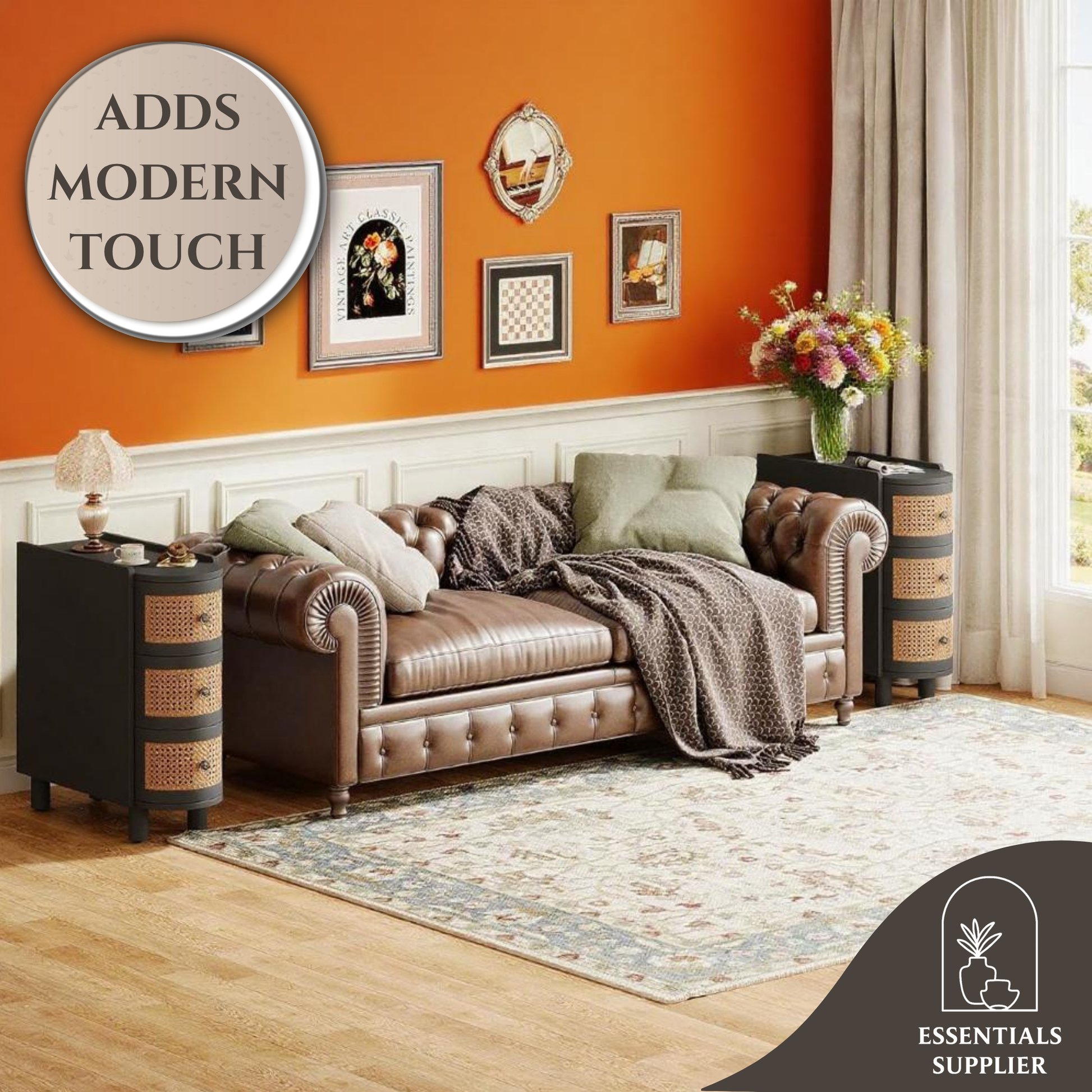 ✅ Durable Build – Crafted from sturdy MDF and rattan, this 3-drawer end table is built to last. Its robust construction ensures it withstands everyday use without losing its charm.
