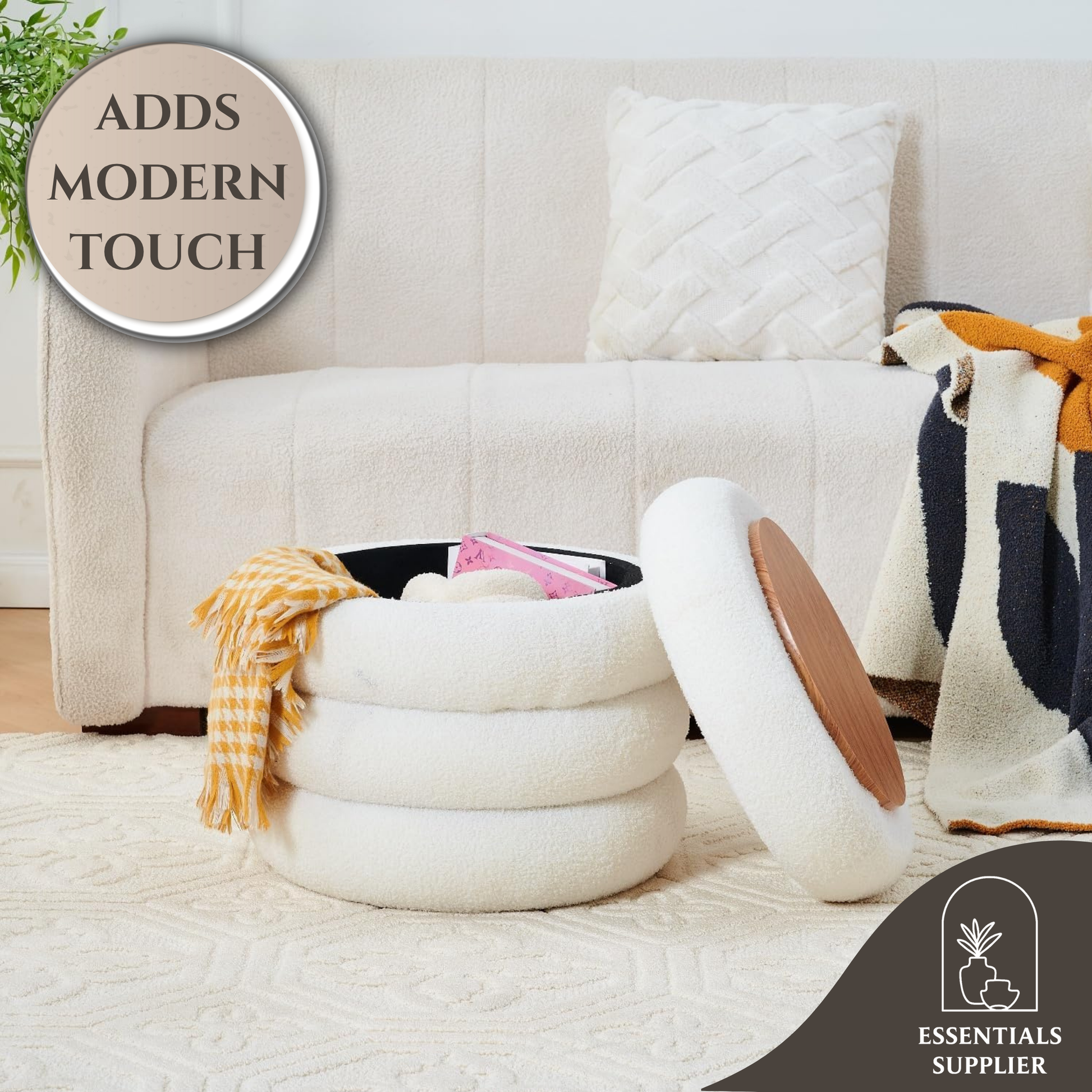 Soft & Durable Materials: Upholstered in cozy teddy fleece with high-density sponge and wood structure for comfort and support.