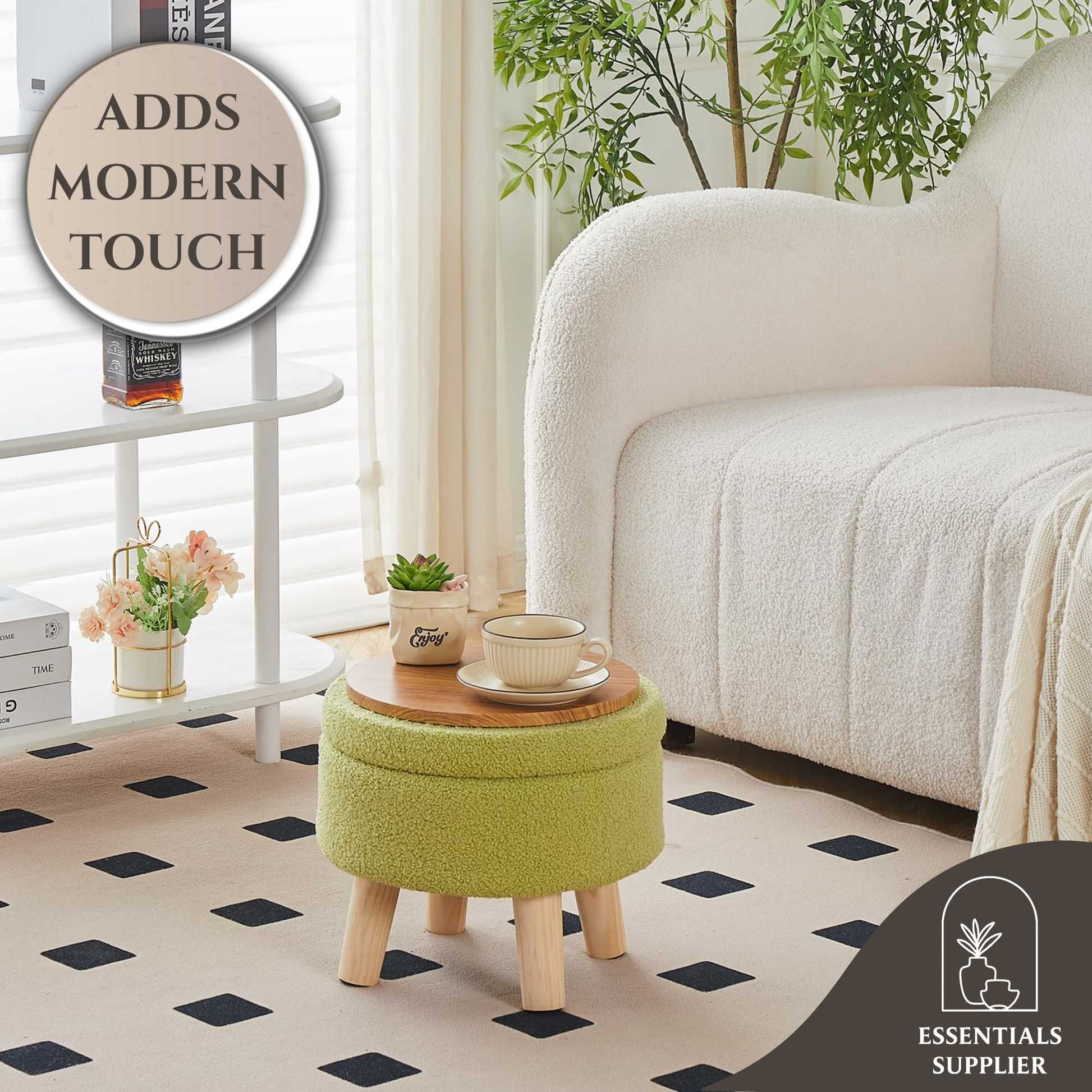 Stylish Design: Chic round shape with natural wood grain legs adds elegance to any room