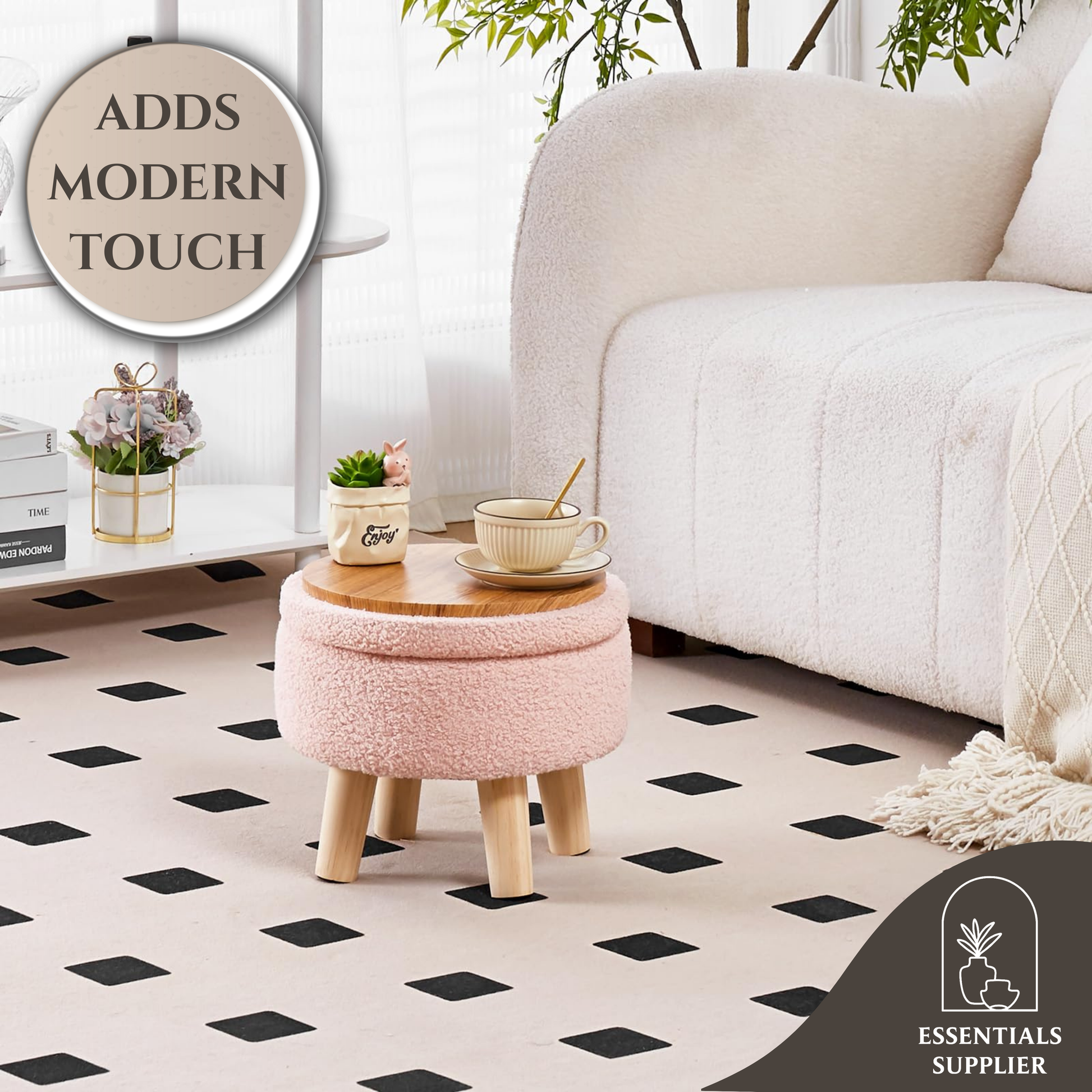 Stylish Design: Chic round shape with natural wood grain legs adds elegance to any room