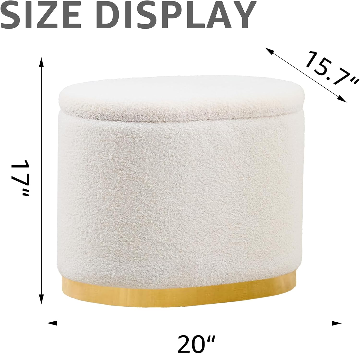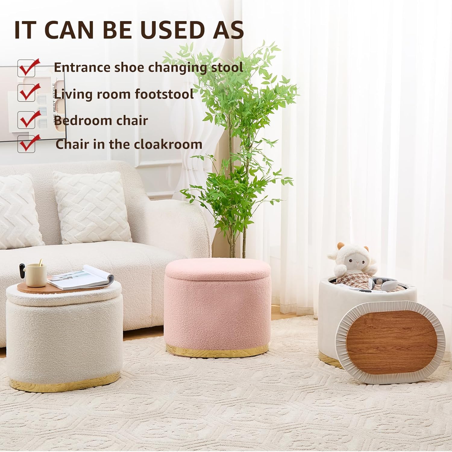 Round Storage Ottoman with Flip-Top Lid – White Upholstered Stool