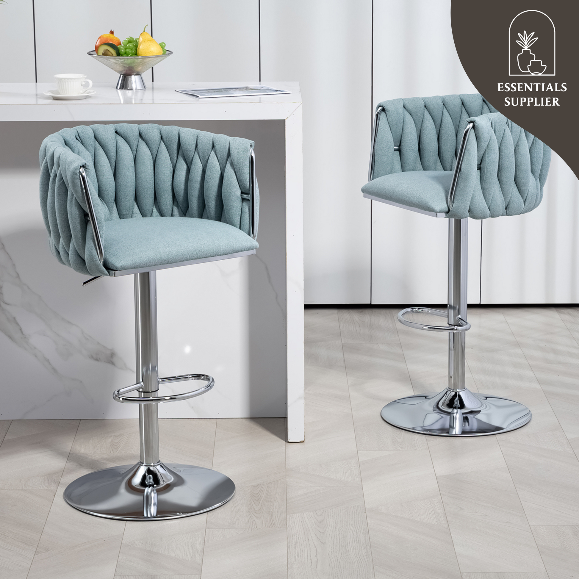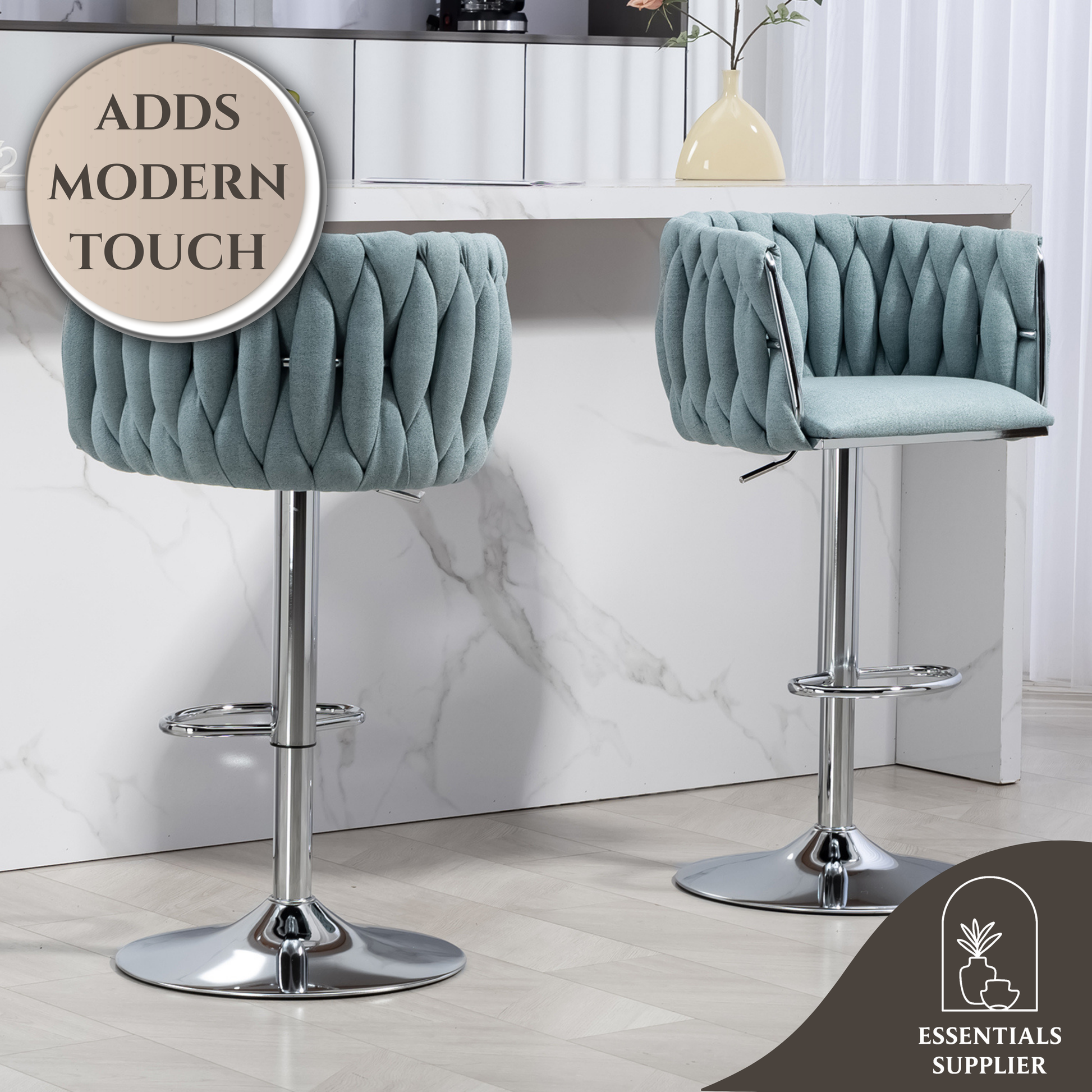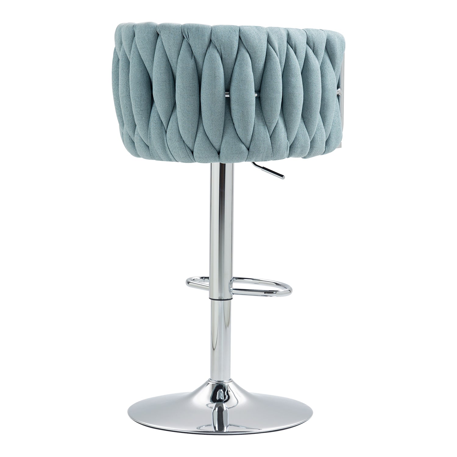 Set of 2 360° Swivel Fabric Bar Stools with Woven Back, Adjustable Height, Blue