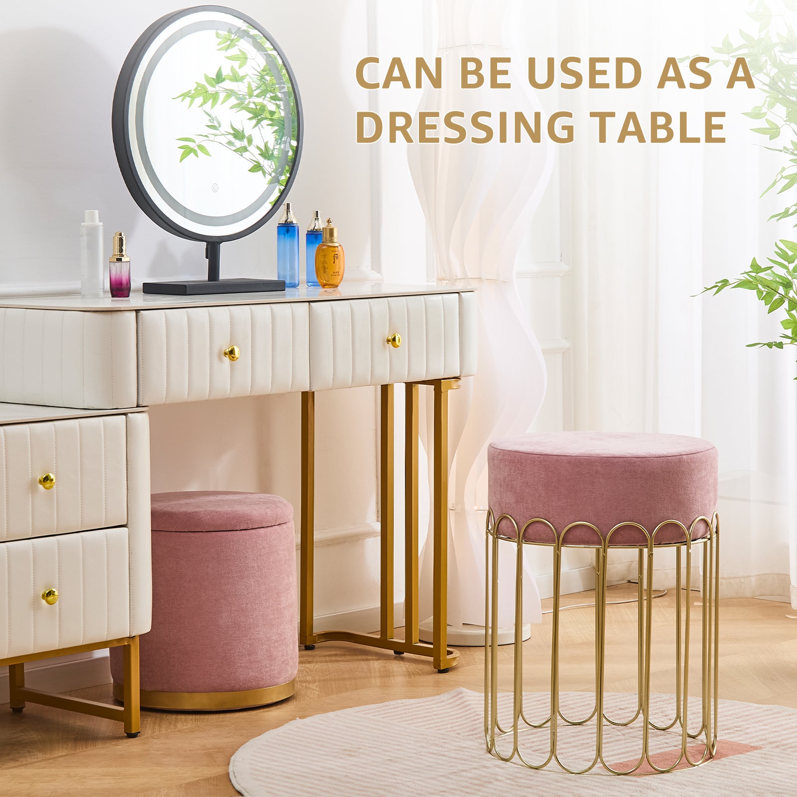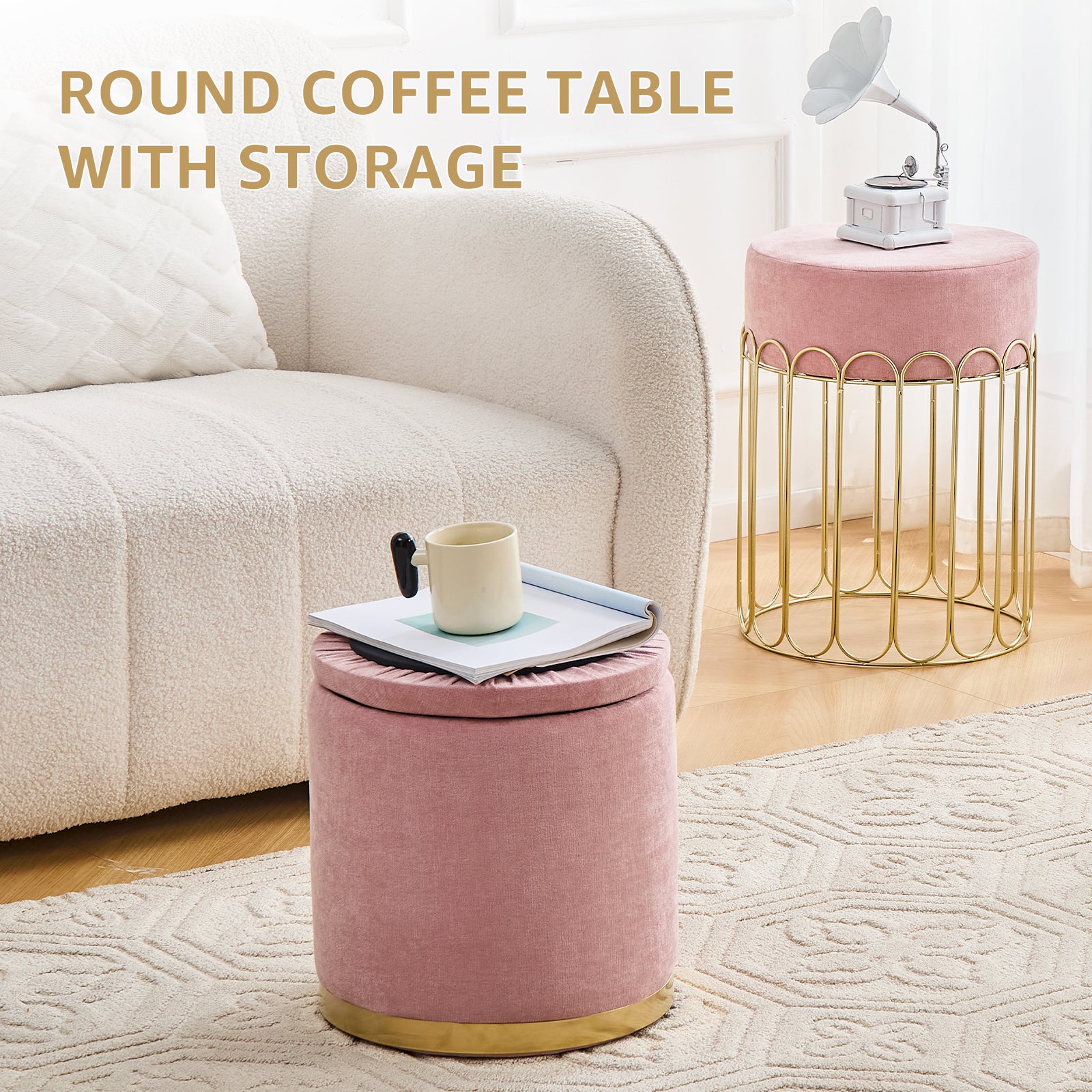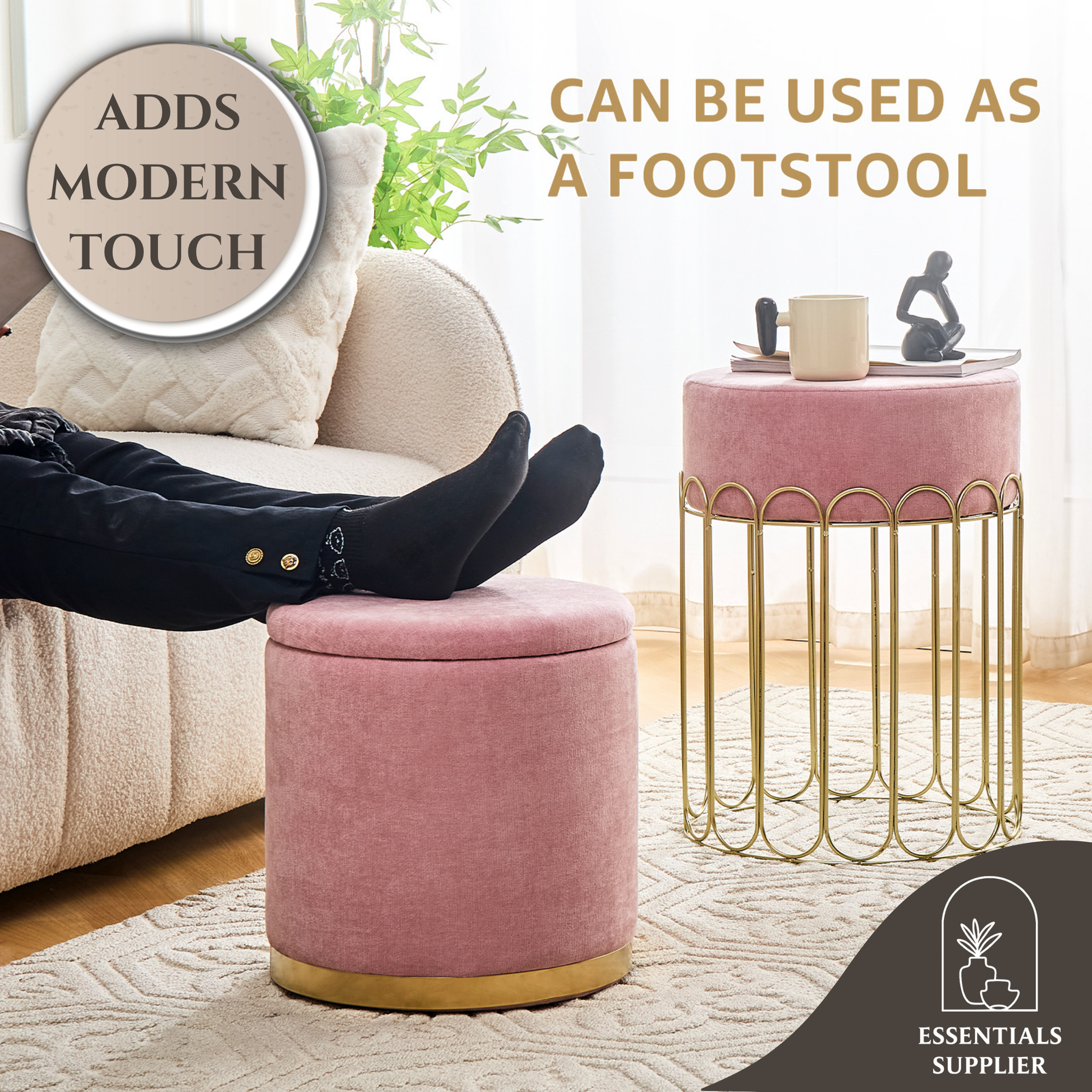 Set of 2 Round Velvet Storage Ottomans with Removable Lids – Pink