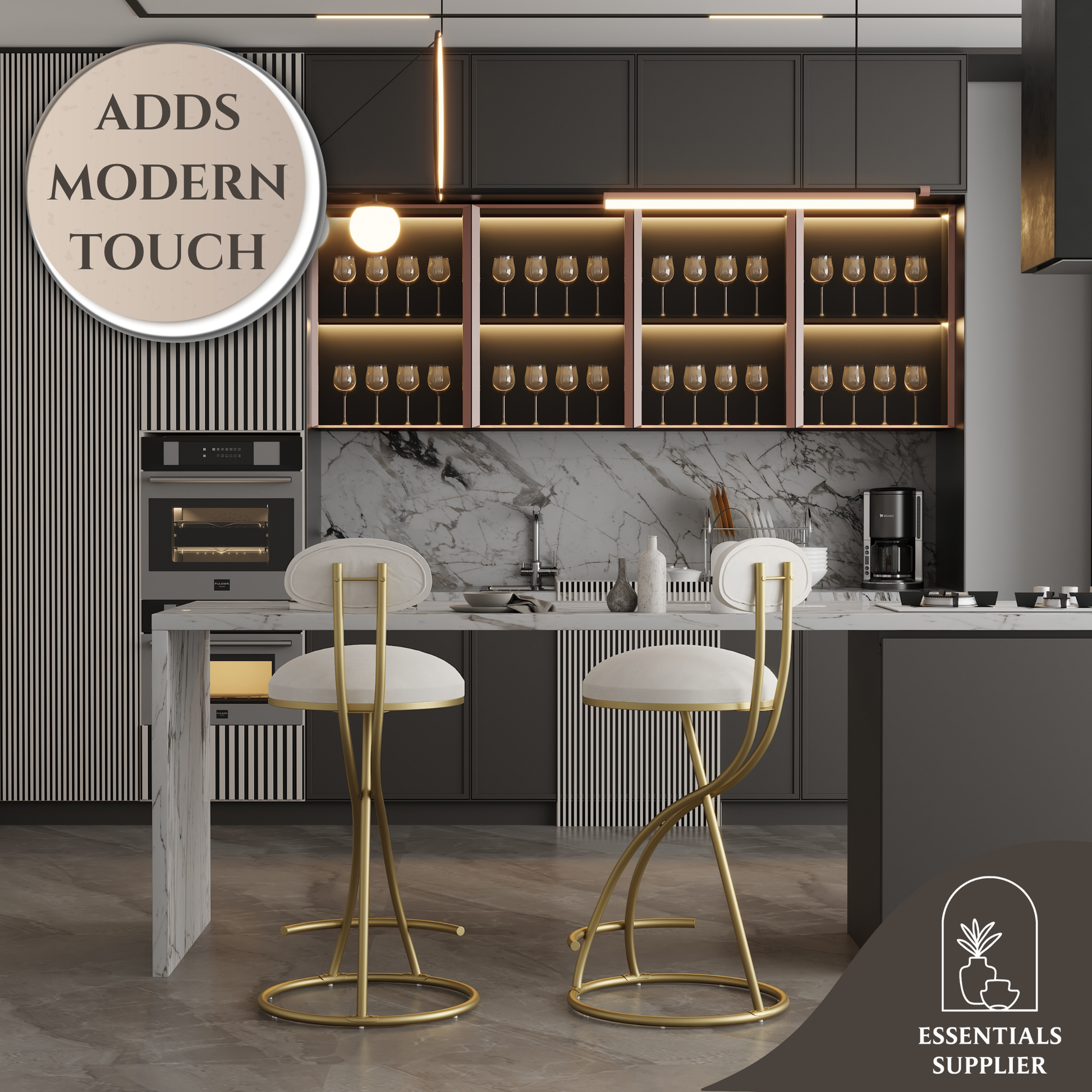 ✅ Stylish & Functional Design – The creamy white velvet paired with golden legs creates a modern yet timeless look, making these stools perfect for kitchens, dining rooms, islands, or home bars.