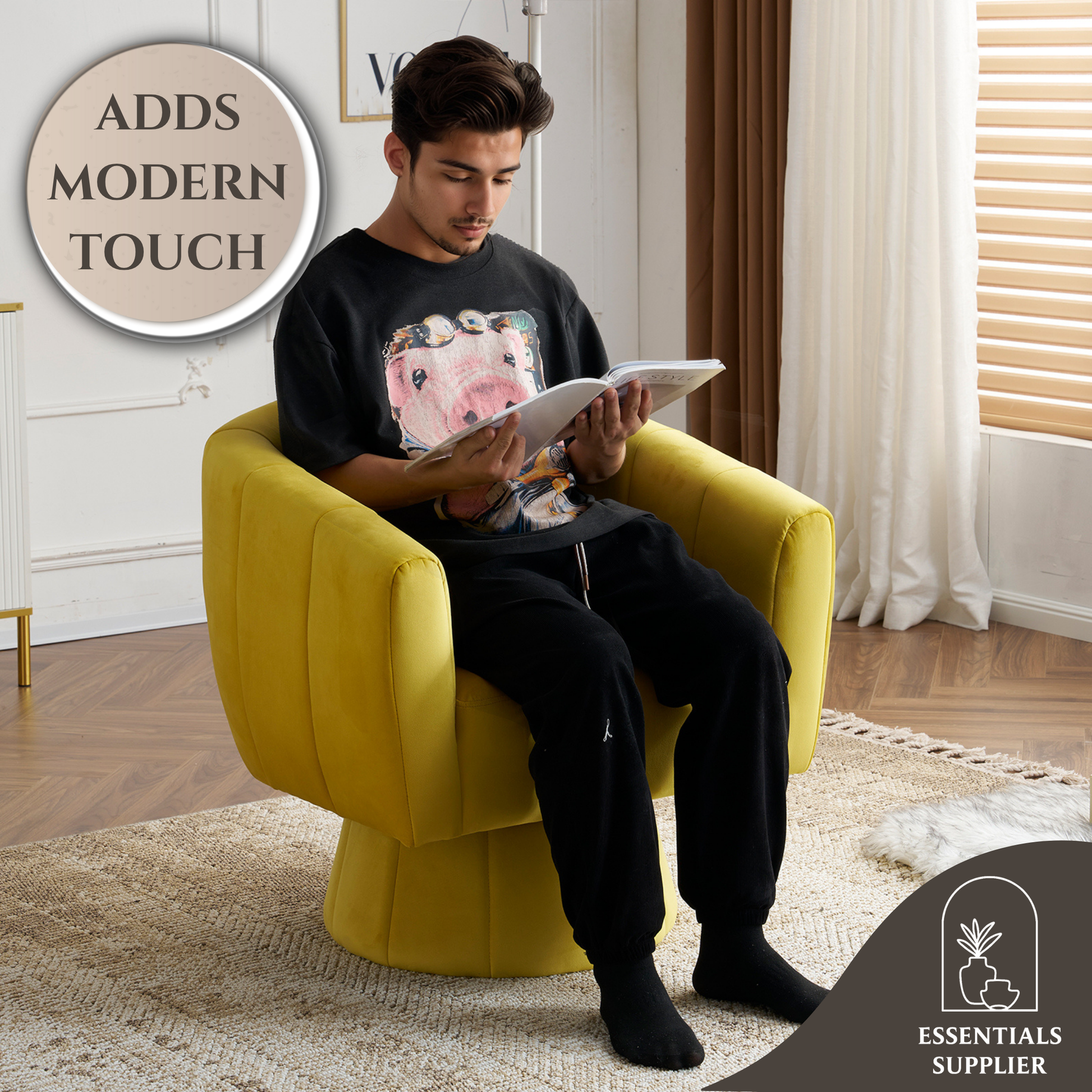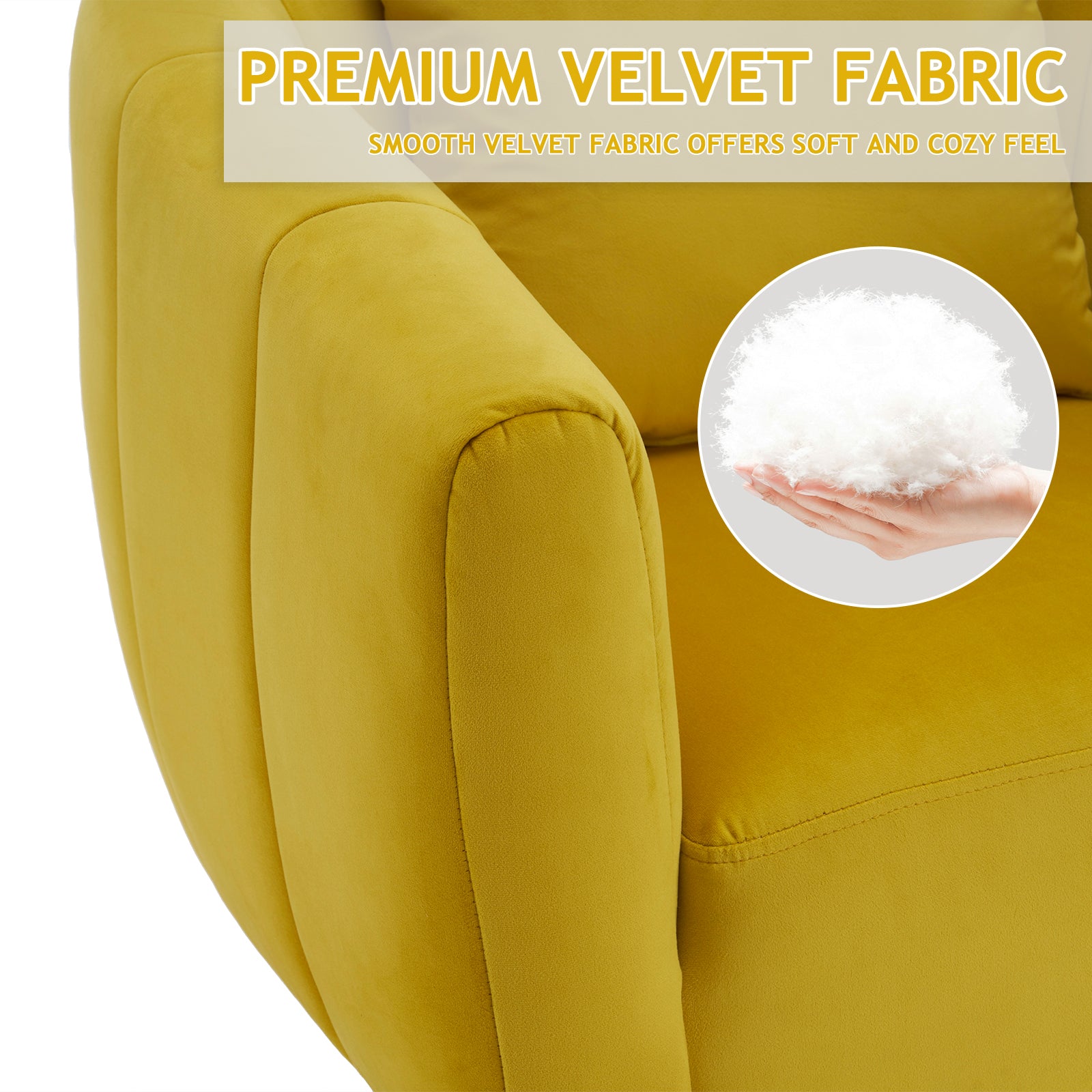 Velvet Accent Chair with Fluffy Cushion – Yellow