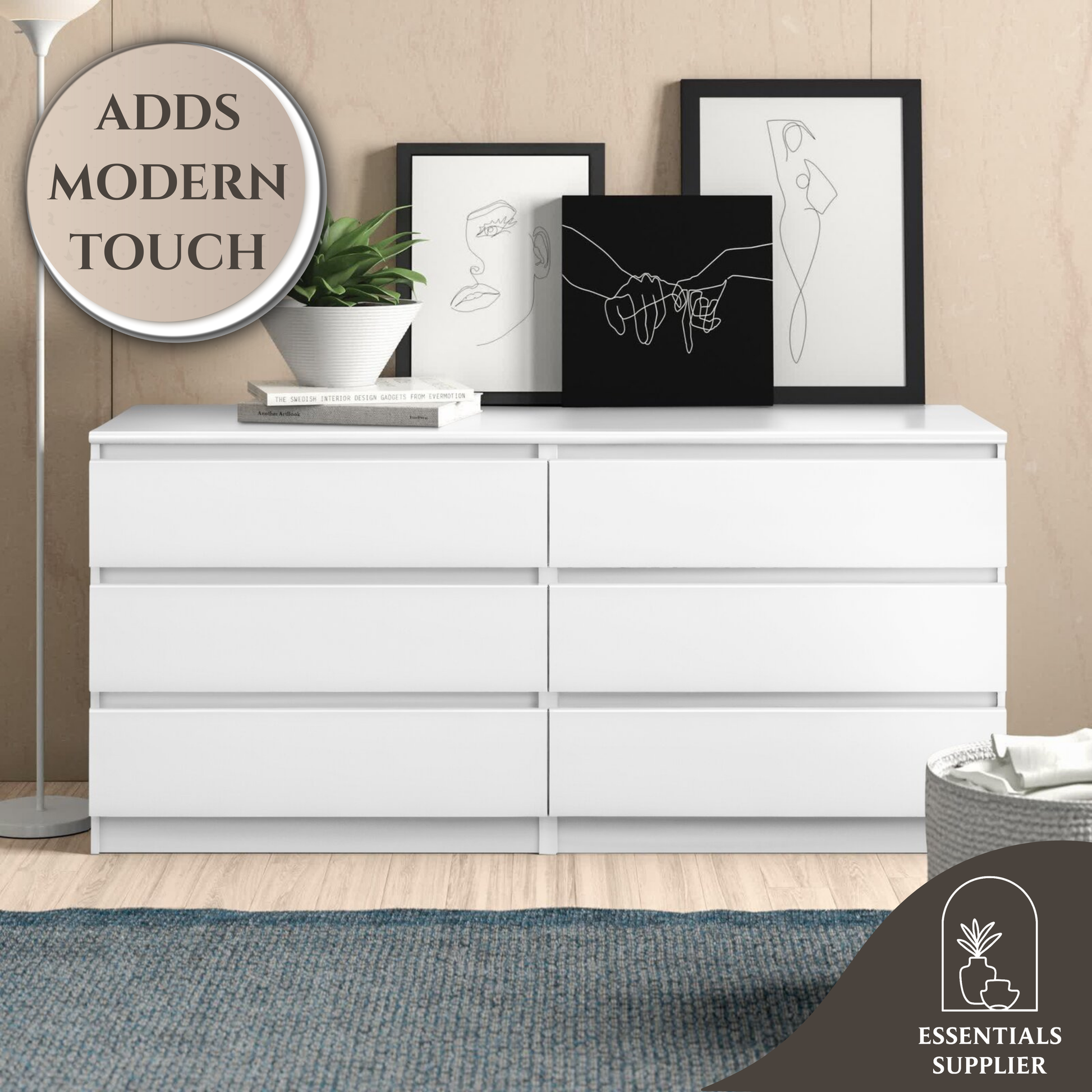 Modern 6-Drawer Dresser: Sleek, handle-free design fits any bedroom, hallway, or living room décor