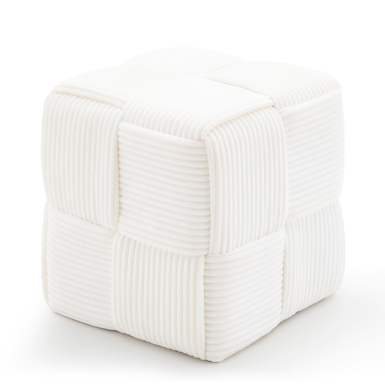 White Corduroy Ottoman Vanity Stool – Square Footrest for Bedroom & Entryway