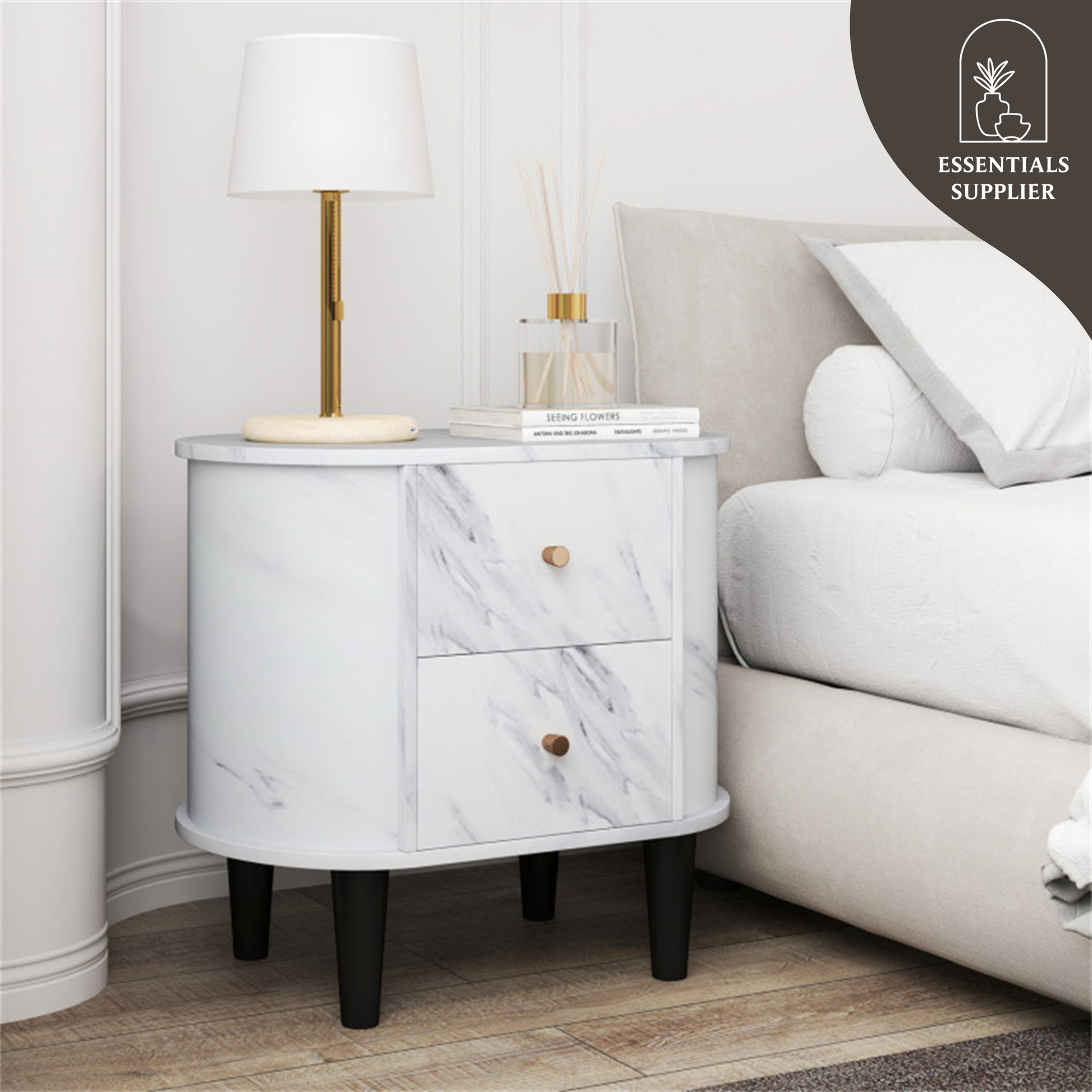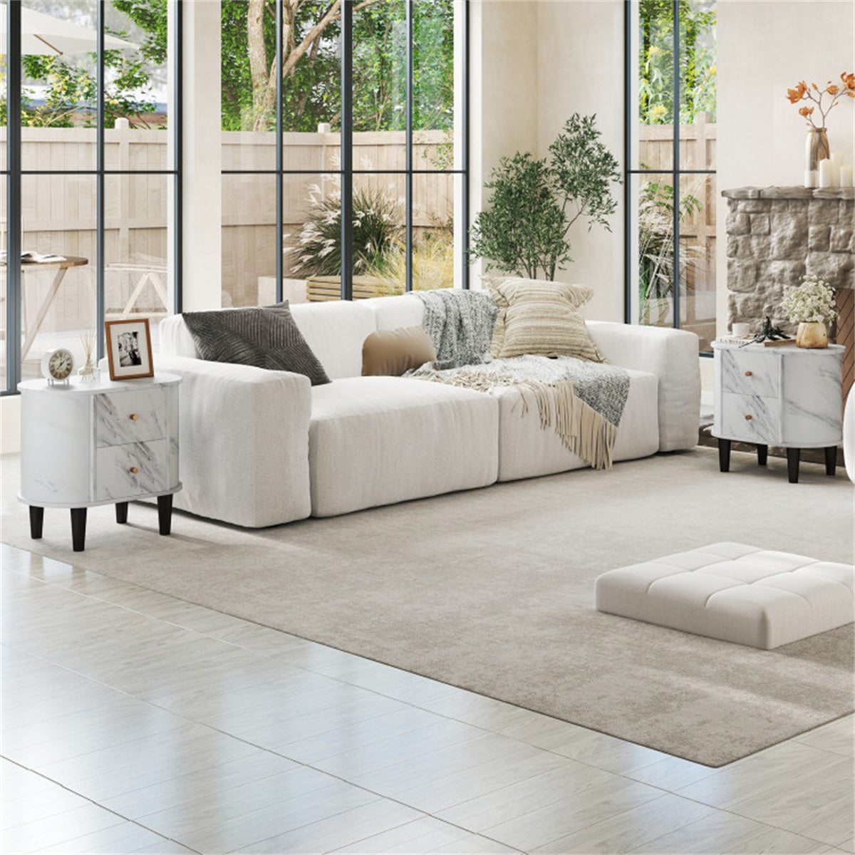 White Nightstand with Faux Marble Top & 2 Drawers – Modern Bedroom Side Table