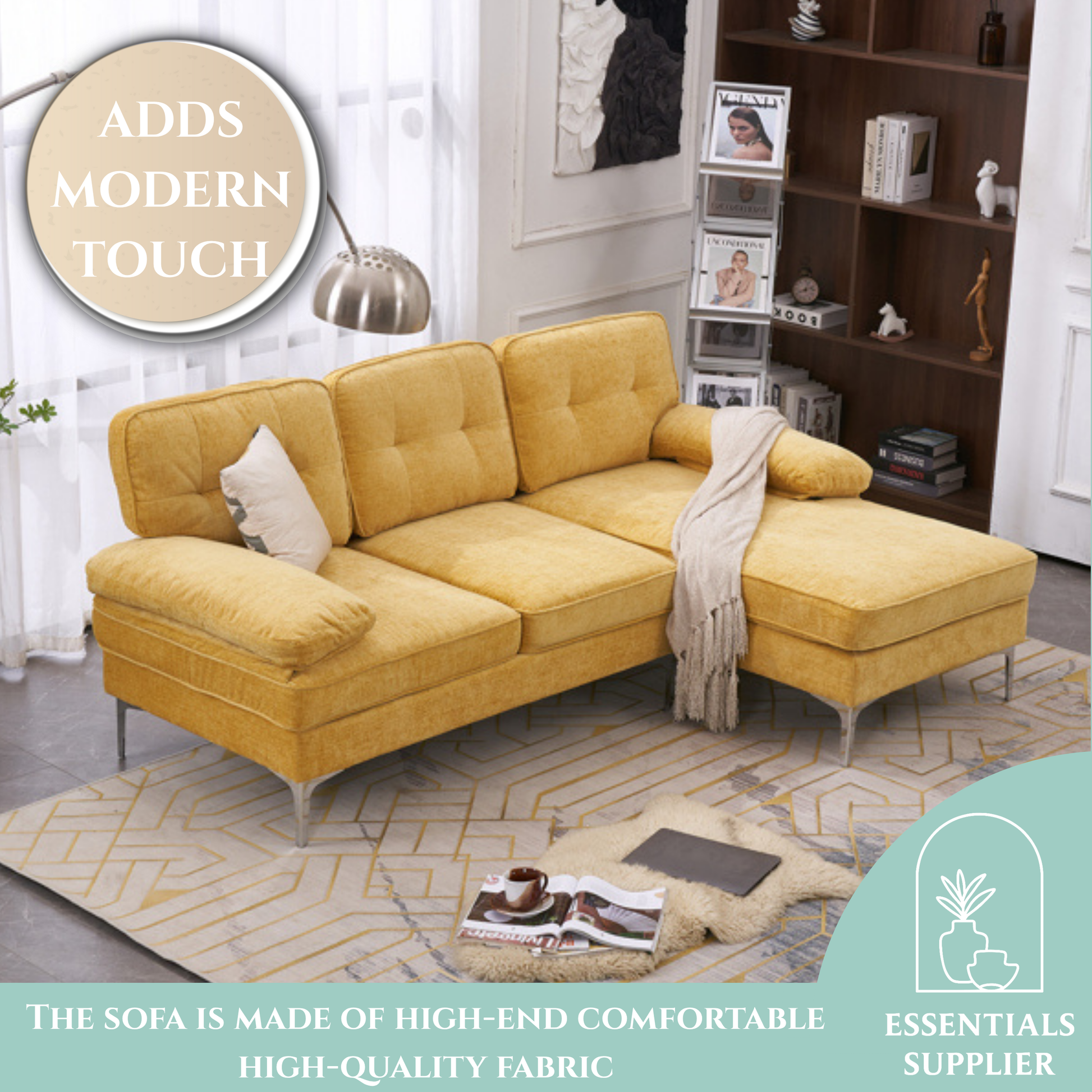 Yellow 3-Seater Modular Sofa – Simple, Stylish Indoor Seating
