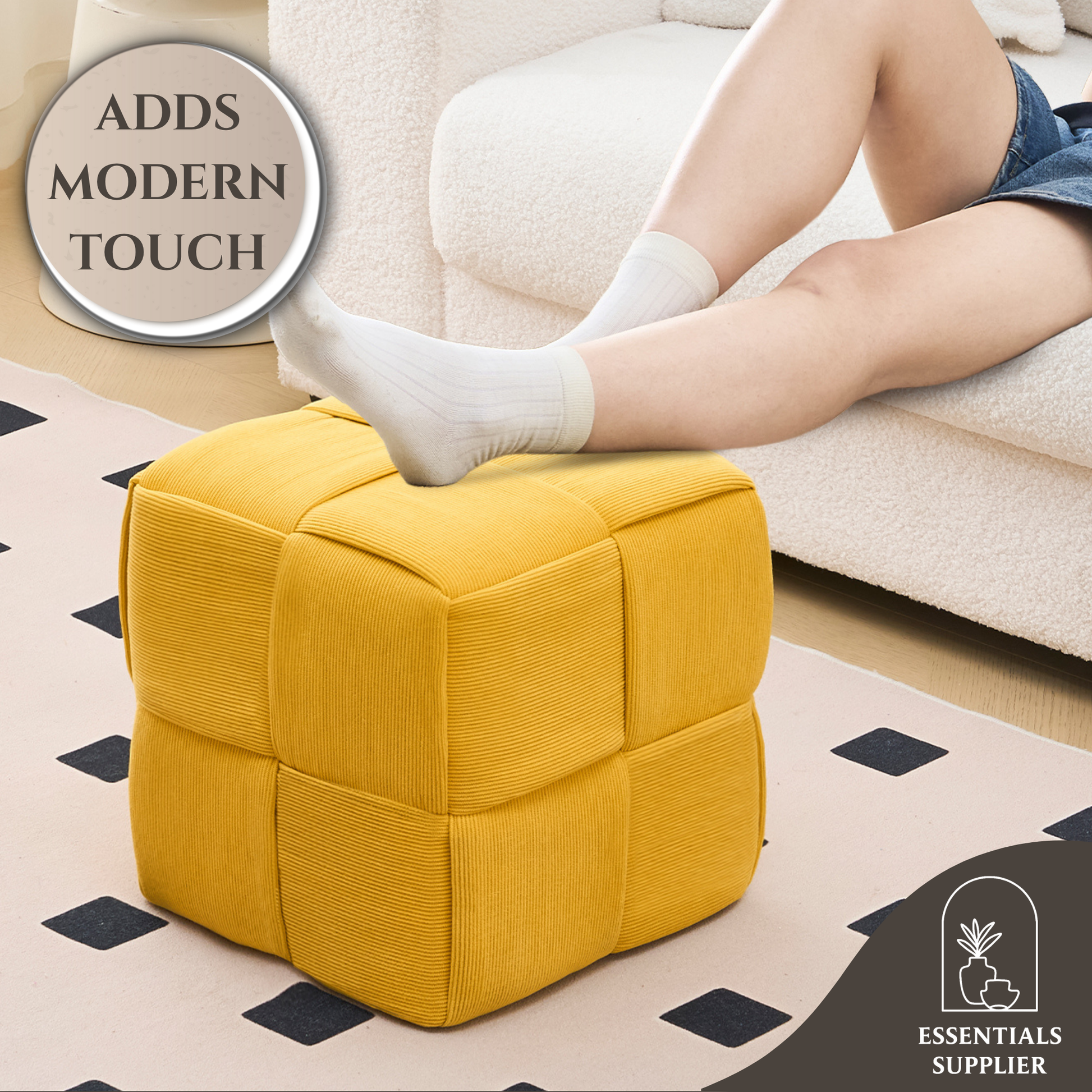 Yellow Corduroy Ottoman Vanity Stool – Square Footrest for Bedroom & Entryway